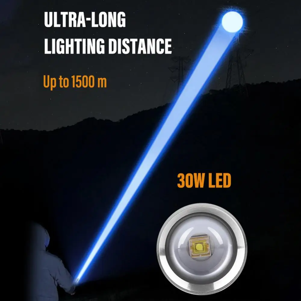 • Led Flashlight Fixed Focus Fishing Searching 30w Led Rechargeable Super Bright For 15 …
