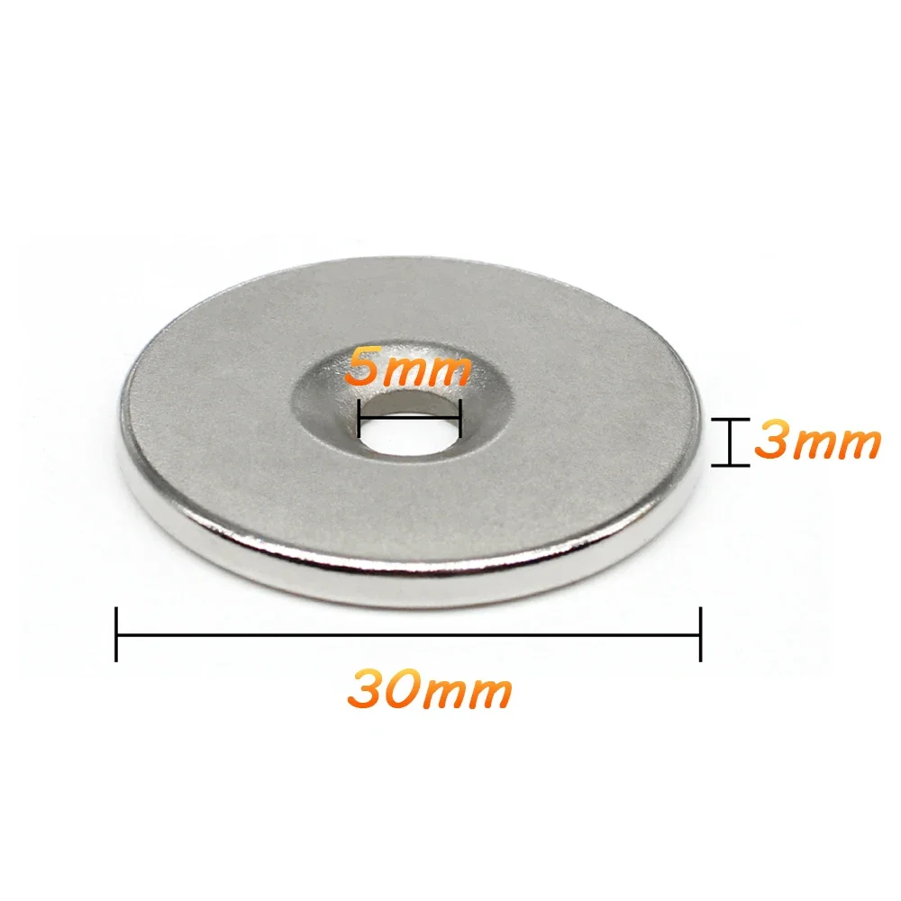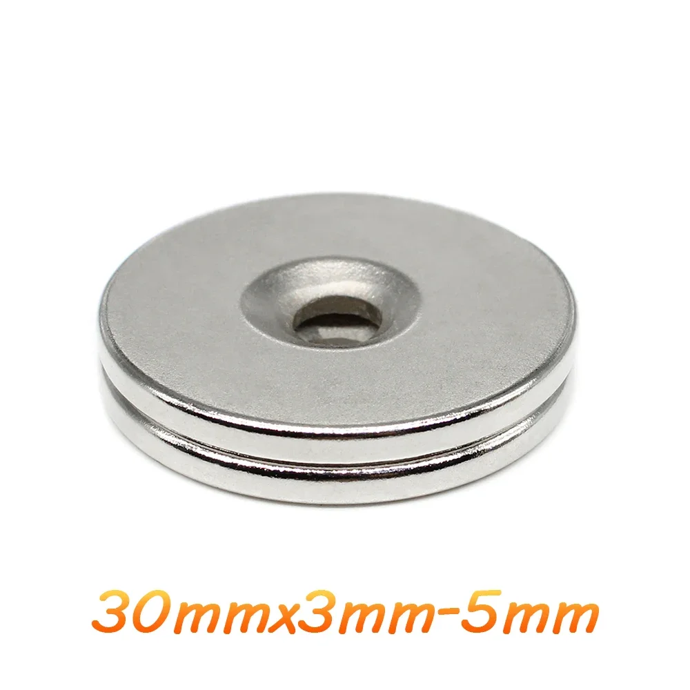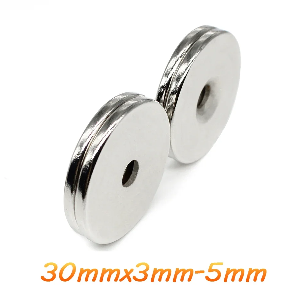 1/2/5/10/15/20/30PCS 30×3-5 Round Strong Powerful Magnets 30*3 mm Hole 5mm 30×5 Disc Countersunk Search Magnet 30×3-5mm 30*3-5