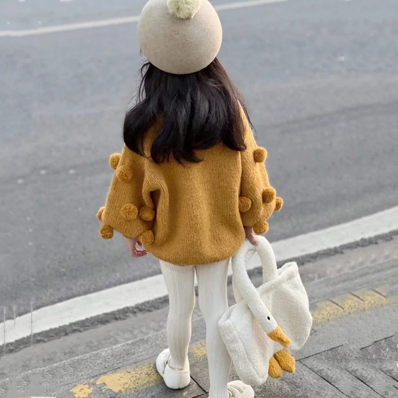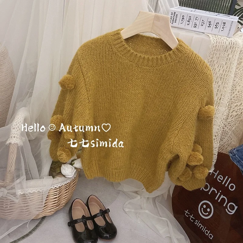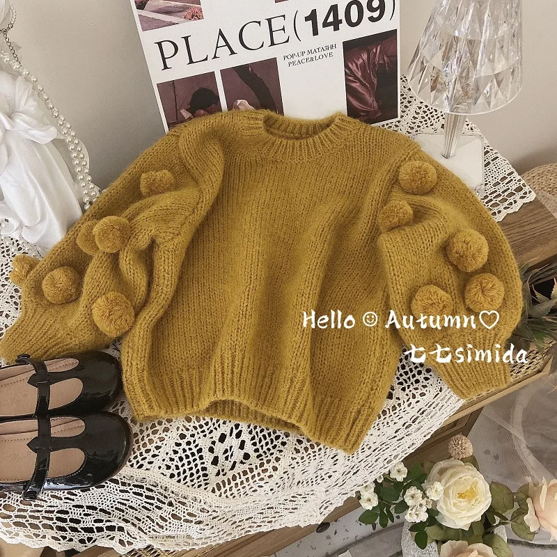 1-7Years Princess Girls Sweater Batwing Sleeve Round Neck Wool Ball Knitting Loose Ju …