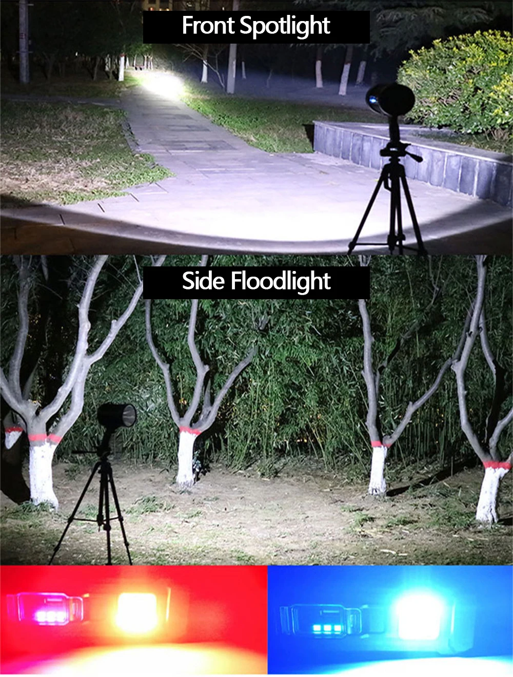 🔦4 Colors. 4 Color Light Modes. White light(High -Medium- Strobe), blue light(High -Medium- Strobe), red light(High -Medium- Strobe), and yellow light(High -Medium- Strobe). You can easily switch between different lighting colors by putting on the corresponding color lenses.