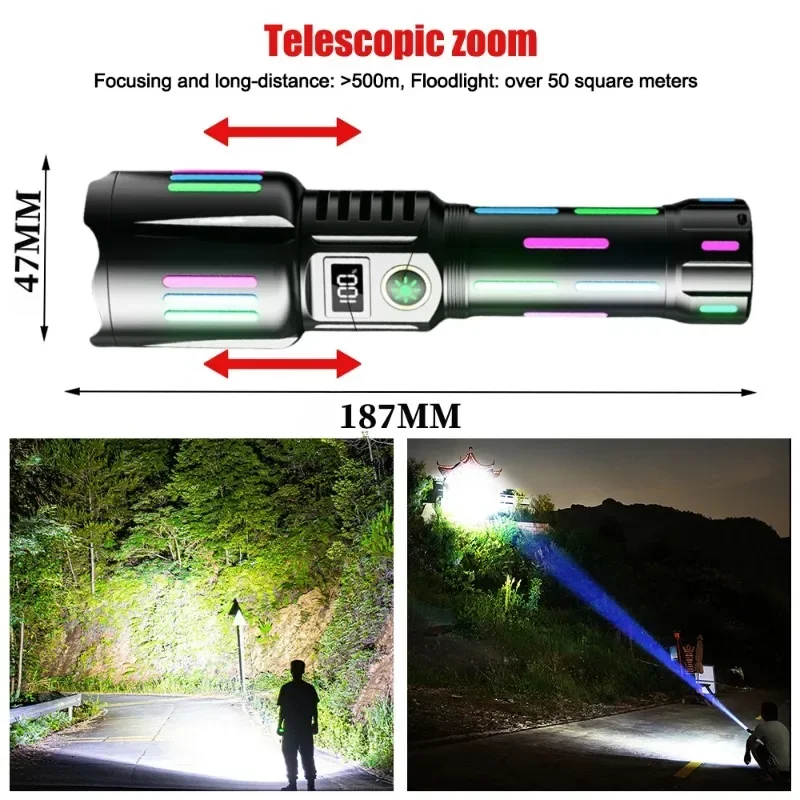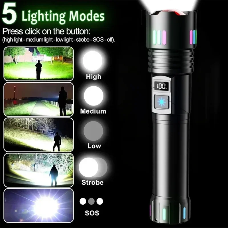 100000LM White Laser Flashlight TYPE-C Rechargeable Military Tactical Zoomable Portab …
