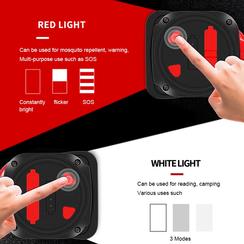 3. Red light test lamp, can be used for mosquito repellent, warning, SOS and other multi-purpose applications.