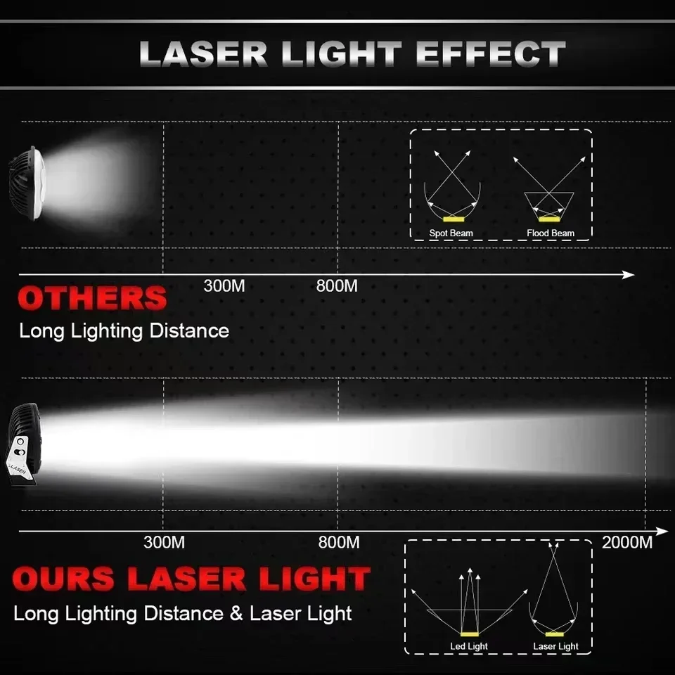 1. Compared with ordinary models on the market, our LED strip is equipped with 8 high-strength imported chips + intermediate laser chips. Driving in the dark night, the brightness is higher, the irradiation distance is further, so that your driving is more comfortable and safe. 【 High performance 】
