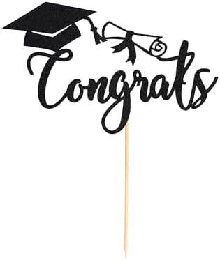 Package include 1pc black glitter congrats cake topper, size fits most cake and is the ideal for cake.