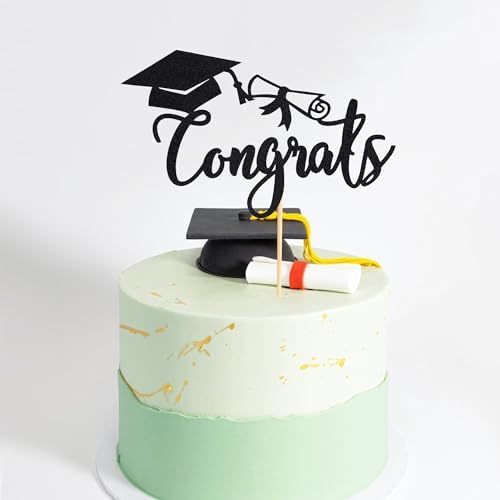 💐 【ITEM INCLUDED】Package include 1pc black glitter congrats cake topper, size fits most cake and is the ideal for cake.