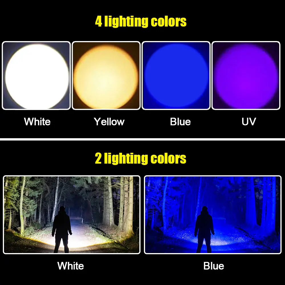 2. High-definition high-power wick, four light sources of blue, white, yellow and purple, one-button switching