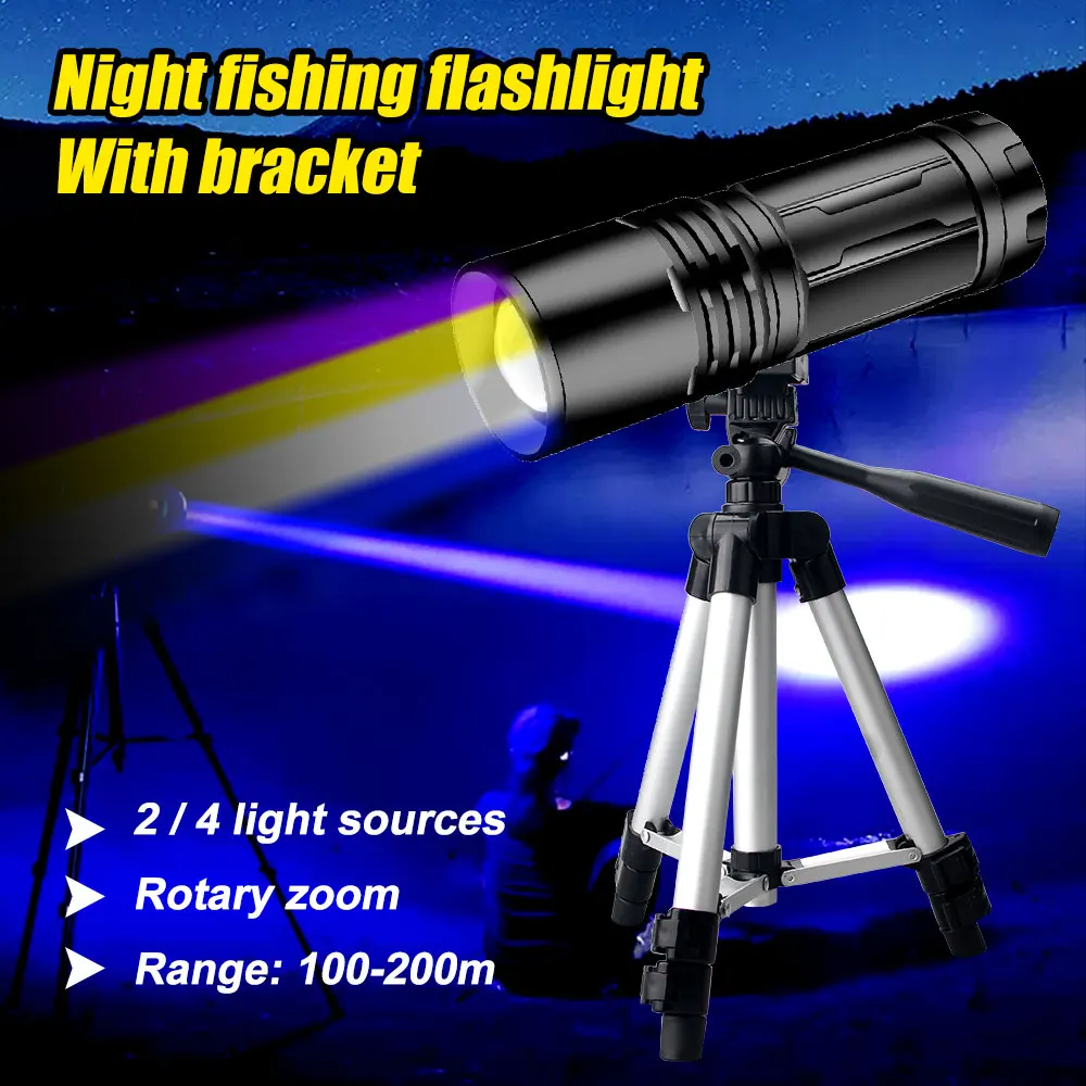 2/4 Colors LED Fishing Searchlight USB Rechargeable Outdoor Handheld Spotlights Hunti …