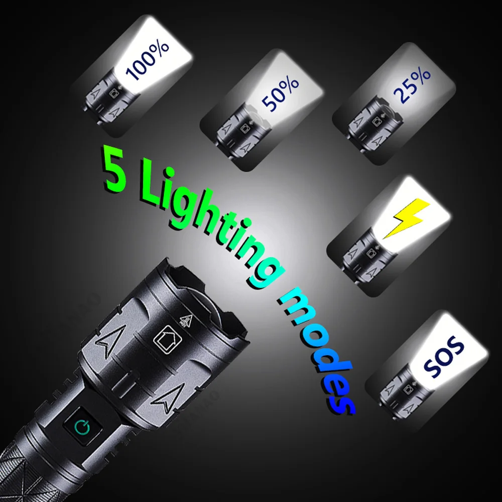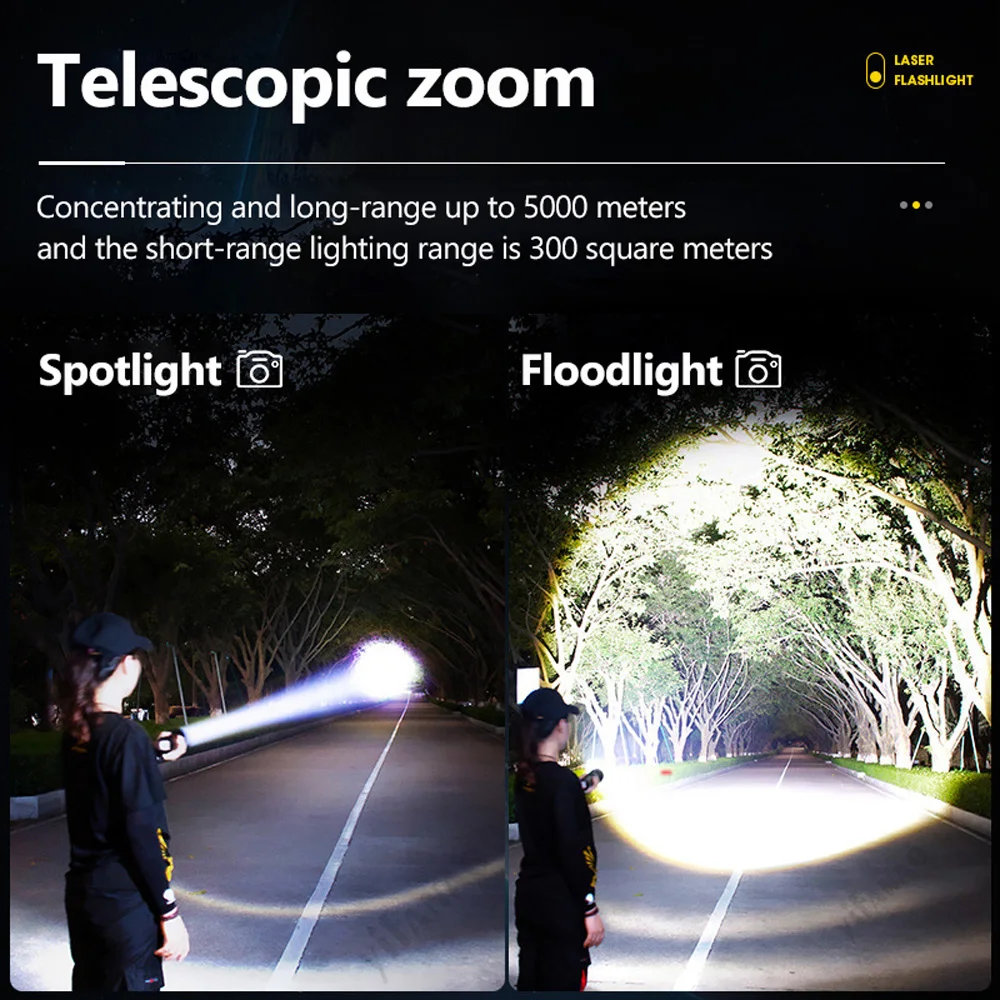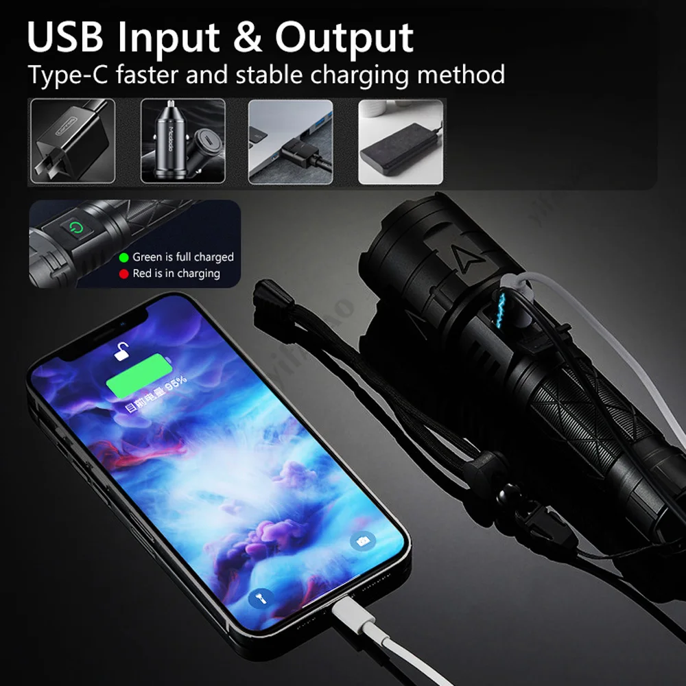 2000 Meters Long-Range White LED Tactical Flashlight 500000 High-brightness Type- C R …