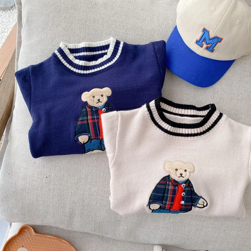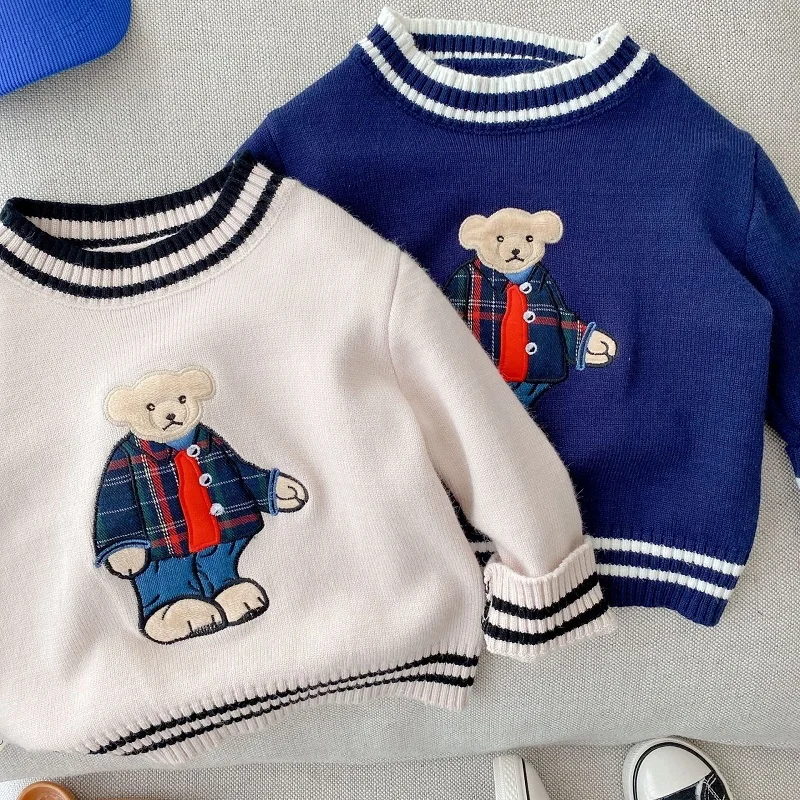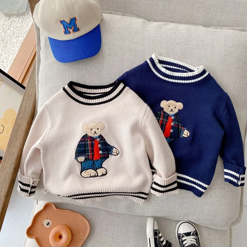 2022 Autumn Children Sweater 0-5Years Kids Boy Girl Long Sleeve Cartoon Bear Pullover …