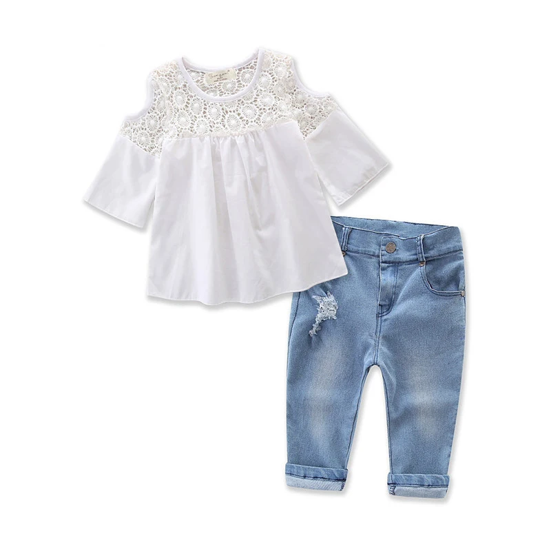 2PCS/2-7Years/Spring Summer Boutique Kids Fashion Clothes Baby Girls Outfits White T- …