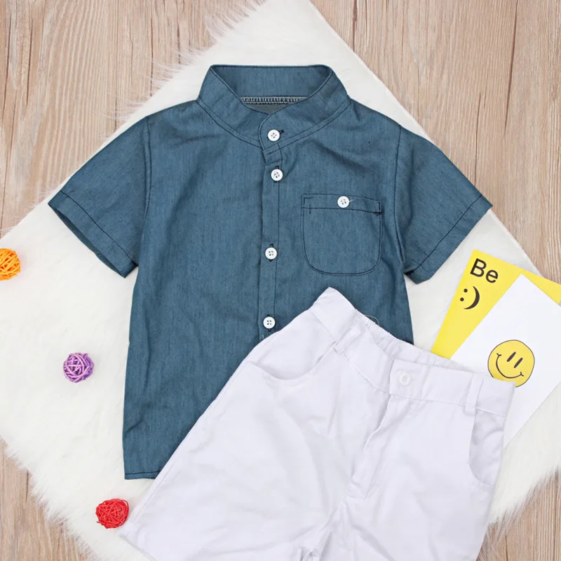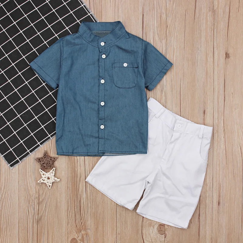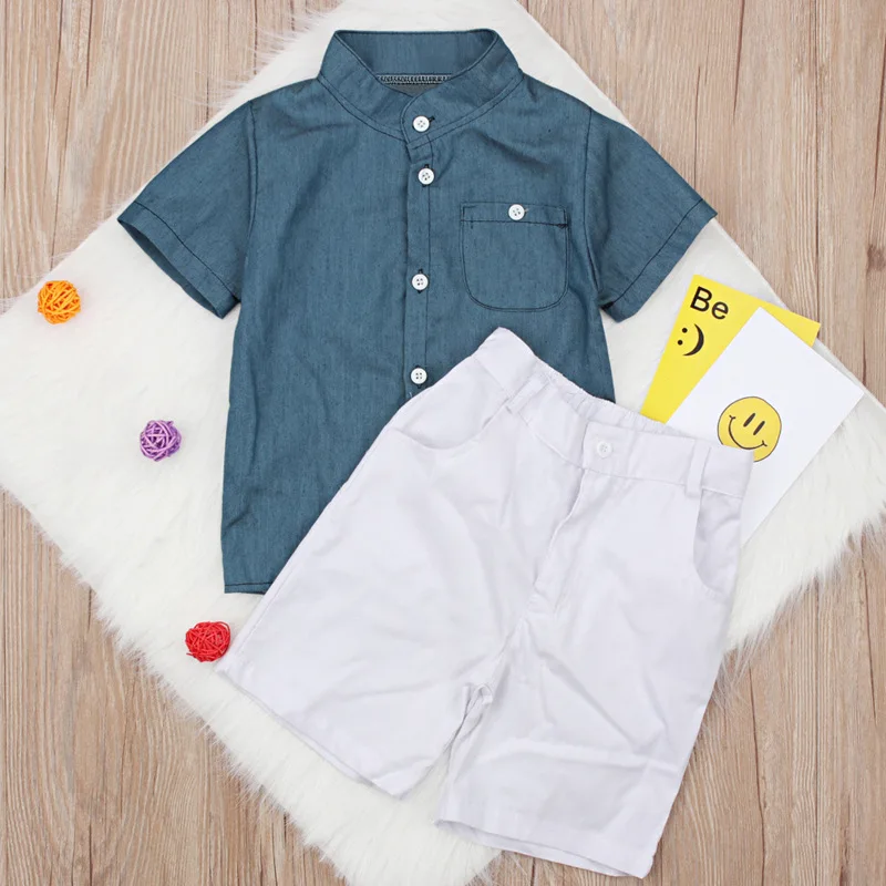 2Piece Toddler Boys Summer Clothes Kids Wear Fashion Blue Short Sleeves Baby T-shirt+ …
