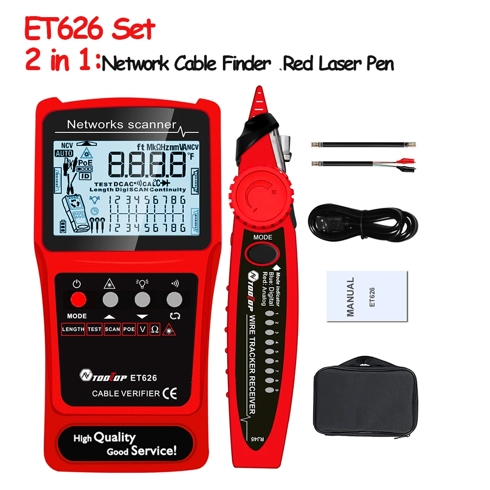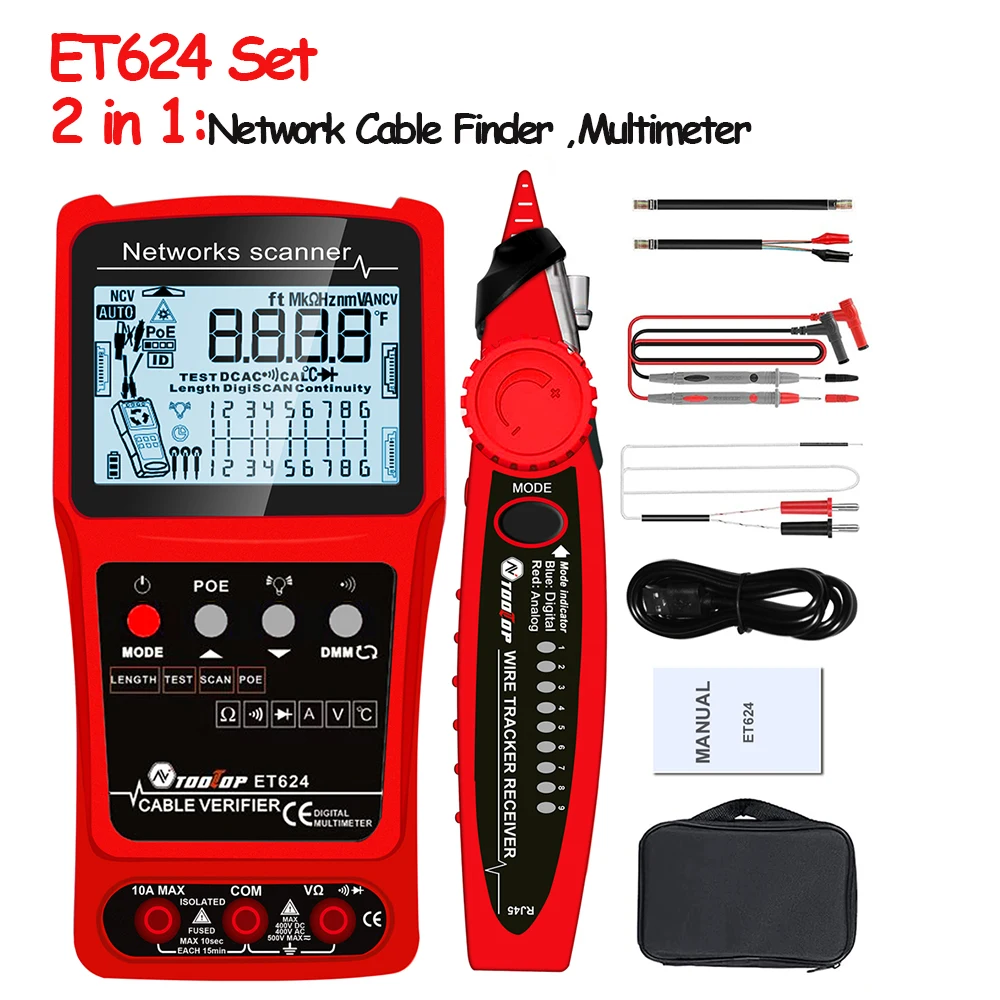 ET616/ET618 Optional: There are two different types for you to choose. The network cable length measuring ranges of ET616 is 400M, and the ranges of ET618 is 500M. Only ET618 has the multimeter functions.