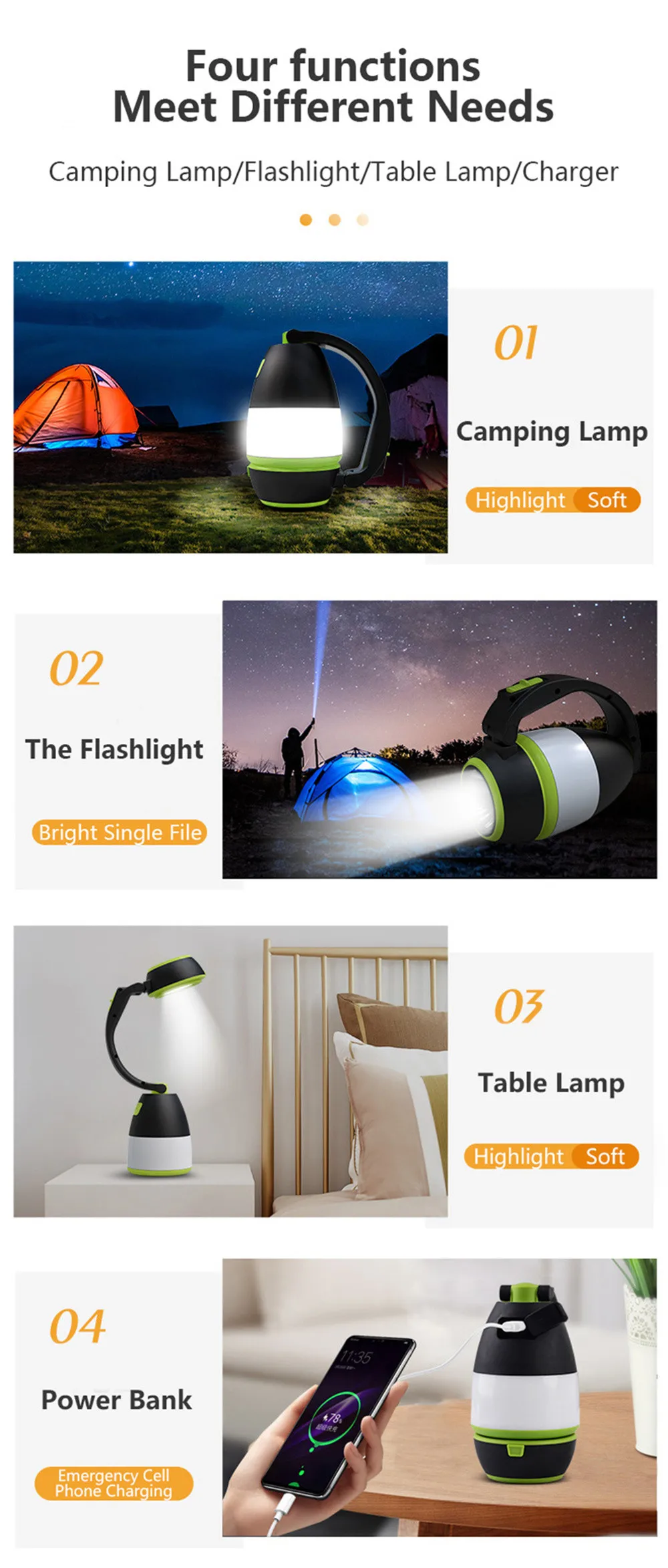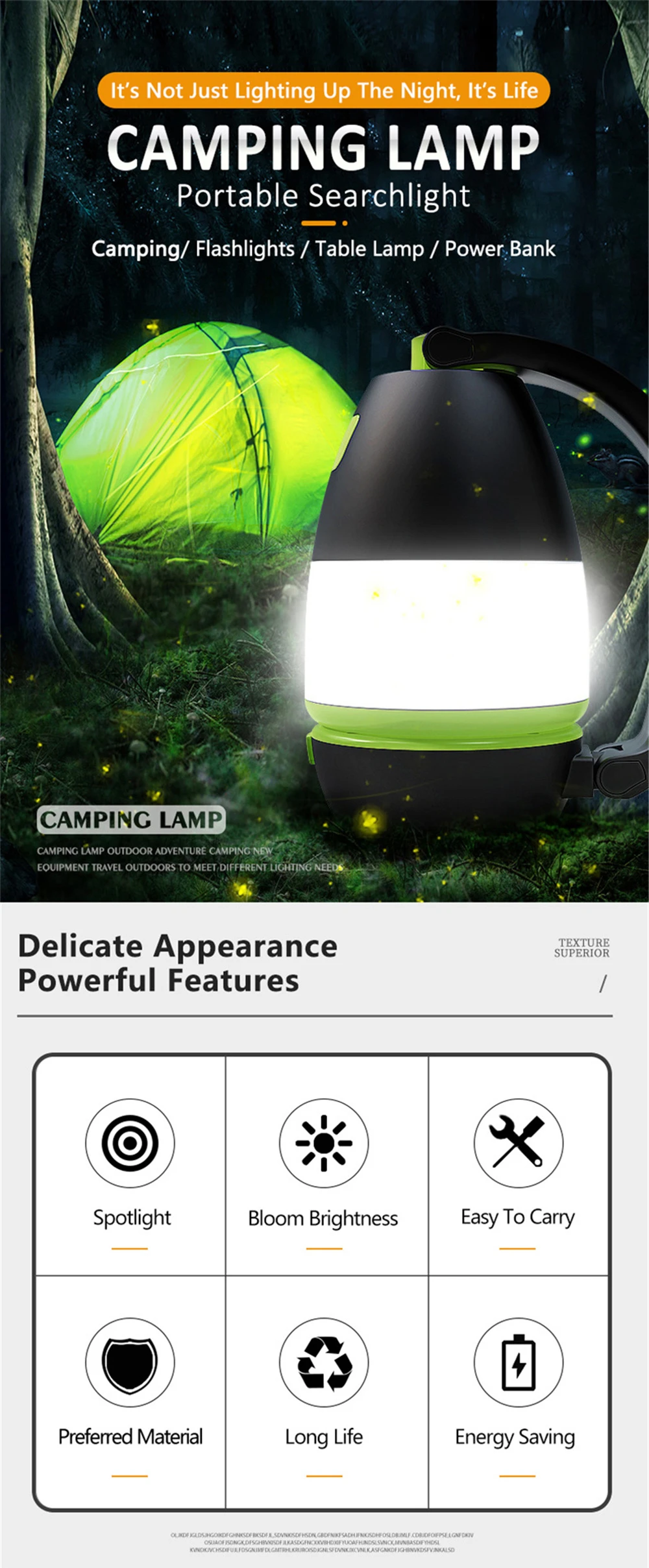 3 in 1 USB Rechargeable Camping Light Lamp Reading Night Light Power Bank Outdoor Por …