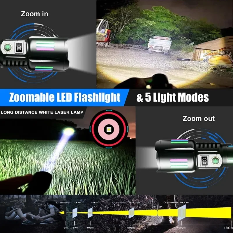 3000 Meter Long-Range White Laser Flashlight with Luminous Strips TYPE-C Rechargeable …