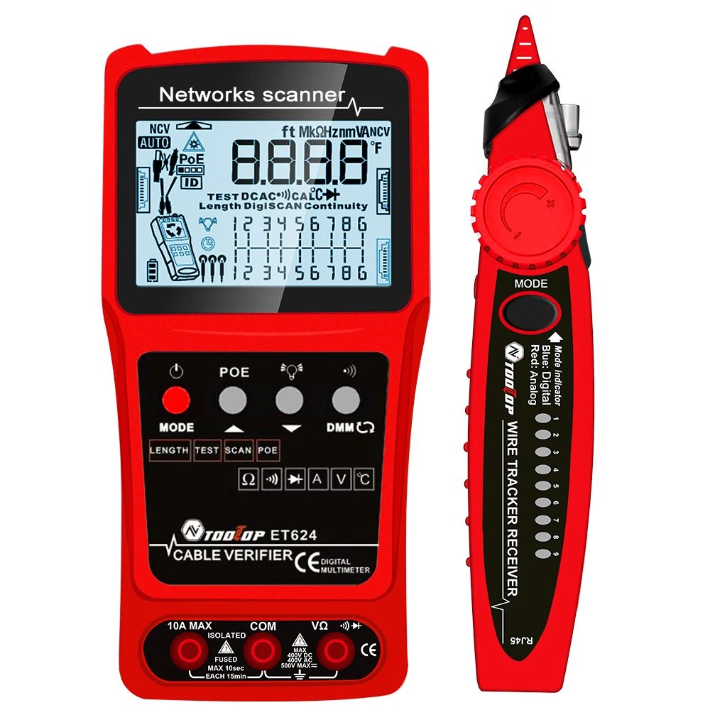 ET628: Network Cable Tester, Visual Fault Locator, Multimeter, Silent Vibrate Mode