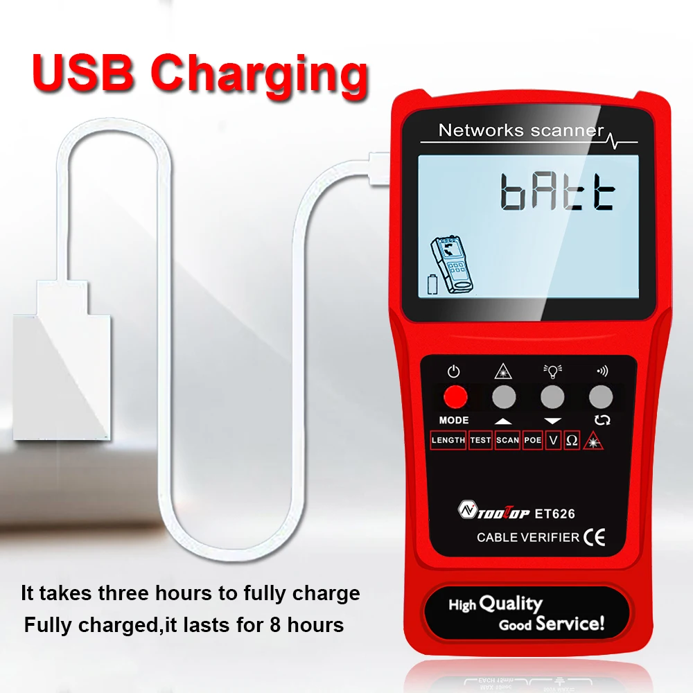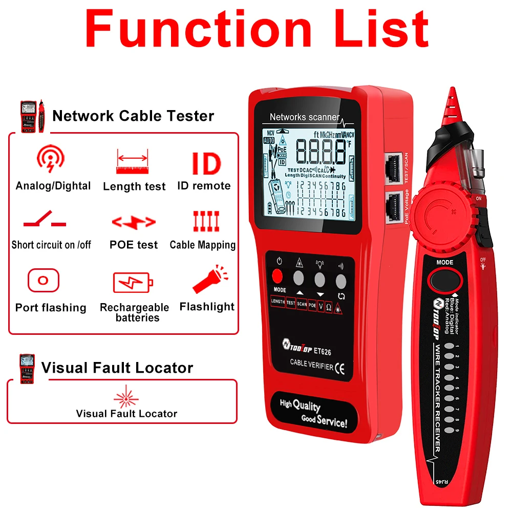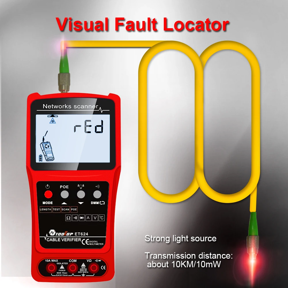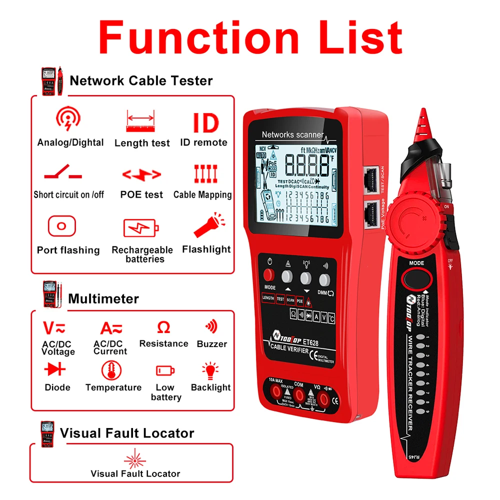ET628: Network Cable Tester, Visual Fault Locator, Multimeter, Silent Vibrate Mode