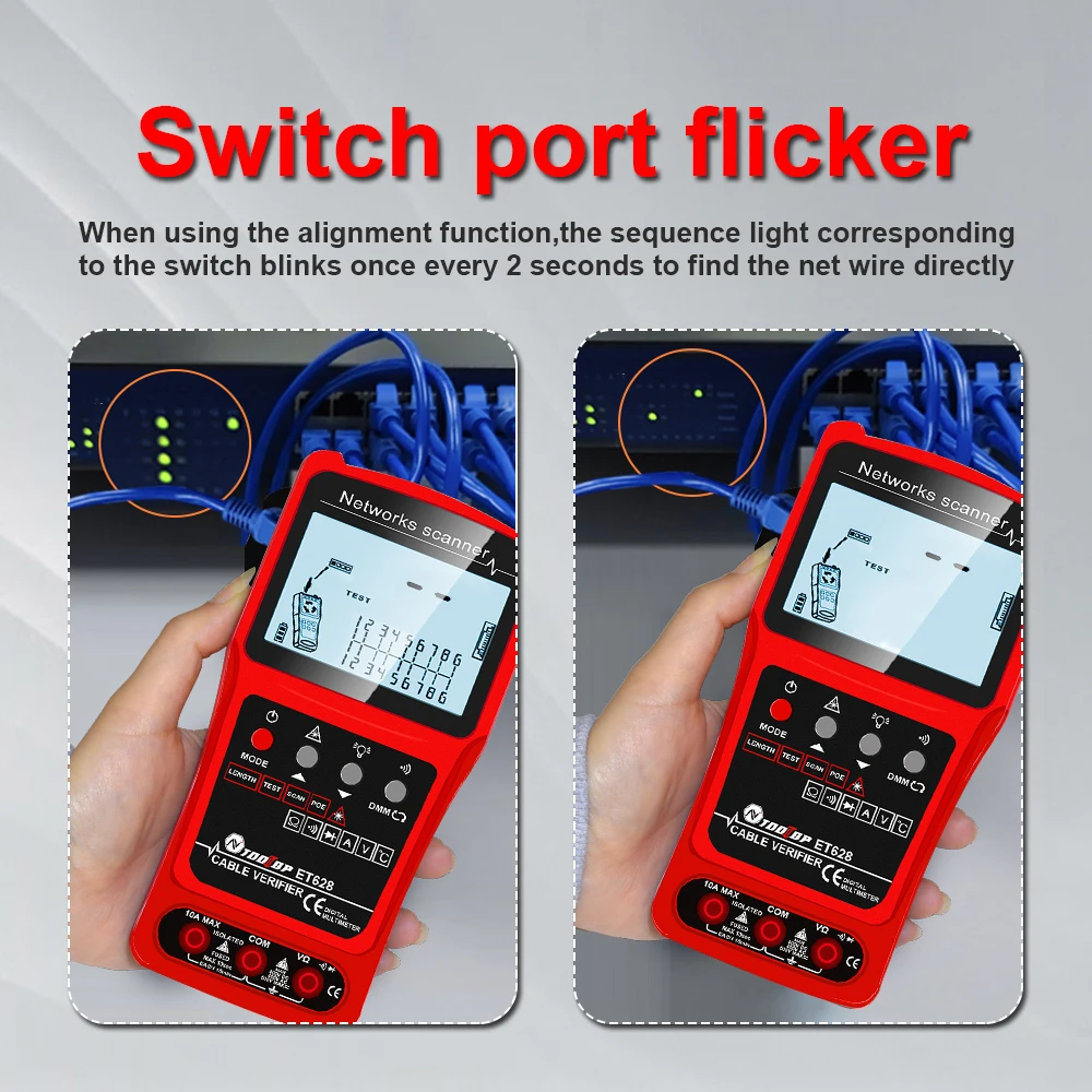 ET628: Network Cable Tester, Visual Fault Locator, Multimeter, Silent Vibrate Mode