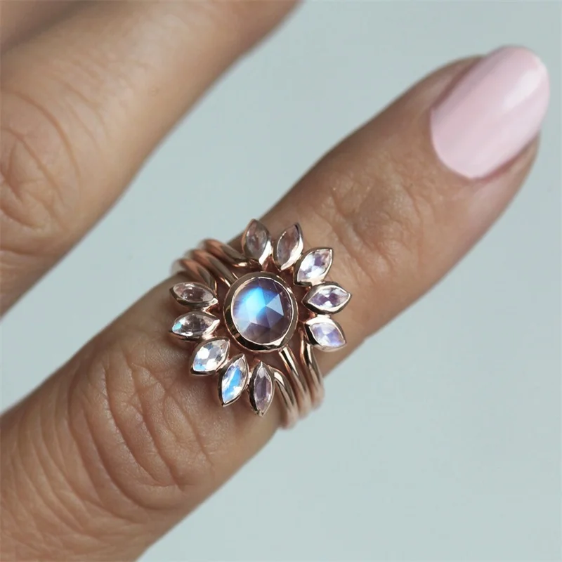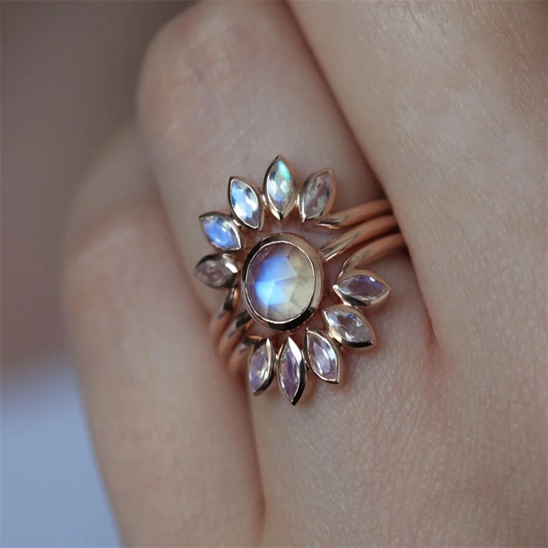 3pcs/set Women's Moonstone Ring Band Exquisite Flower Engagement Wedding Annivers …