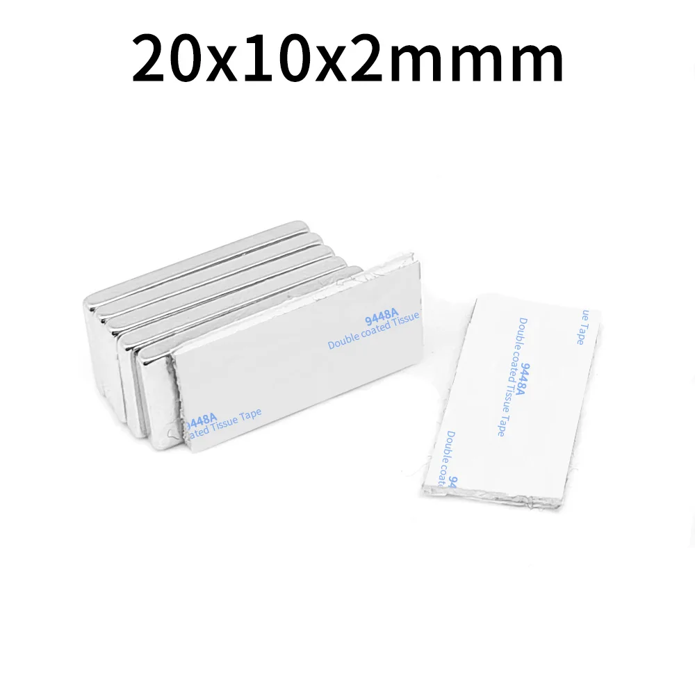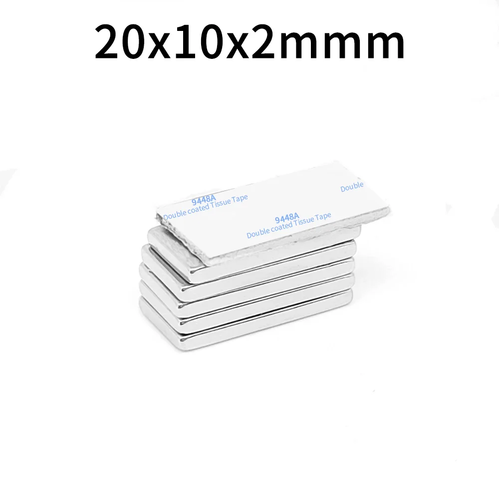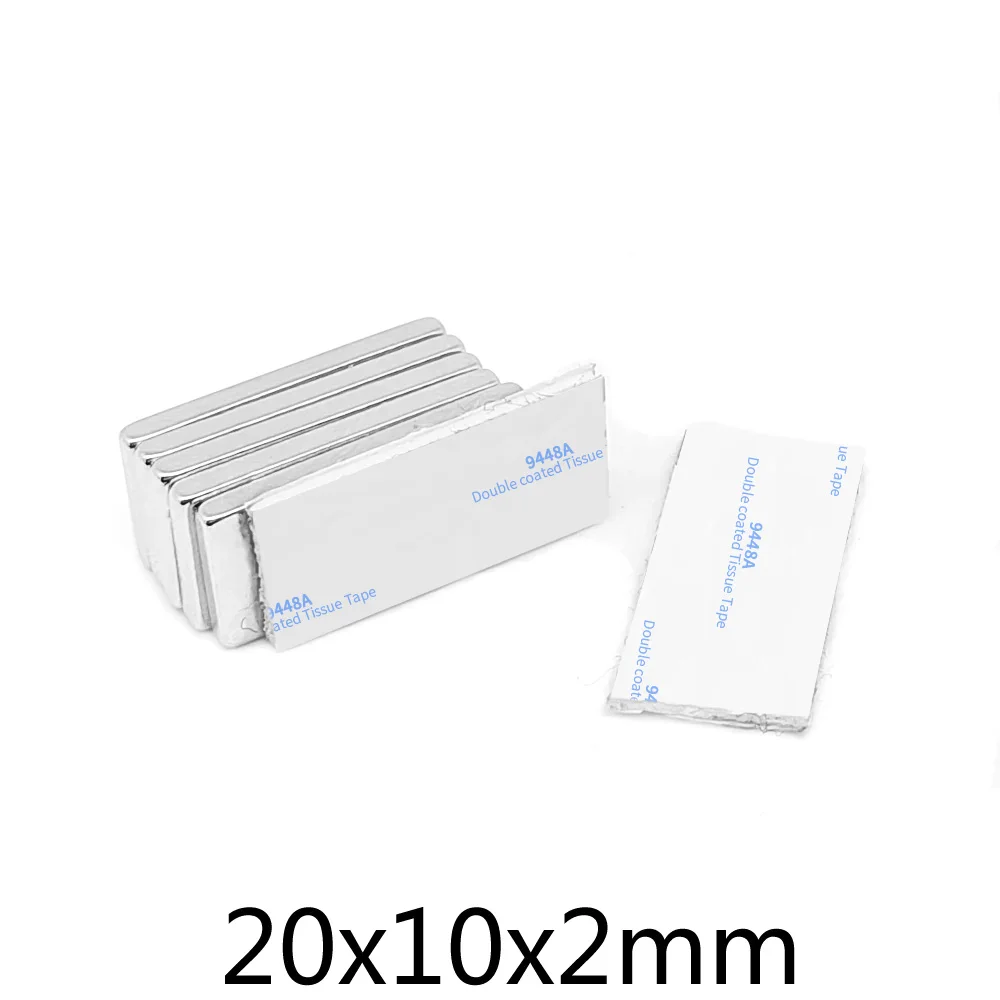 5/10/20/50/100/150PCS 20x10x2 Block Search Magnet With 3M Double-Sided Adhesive Tape 20*10*2 Strong Neodymium Magnets 20x10x2mm