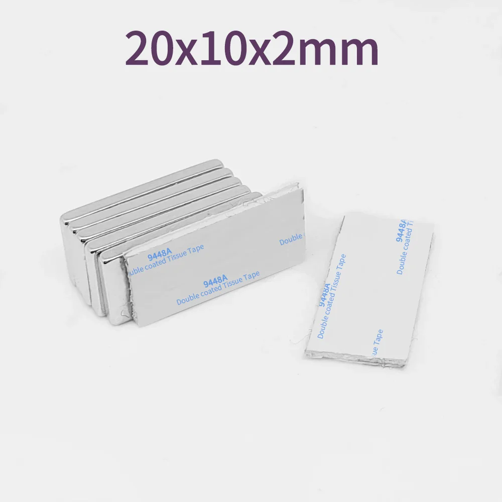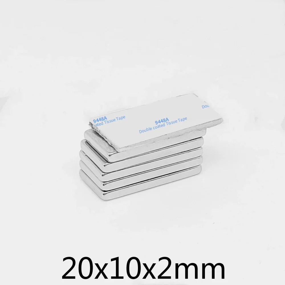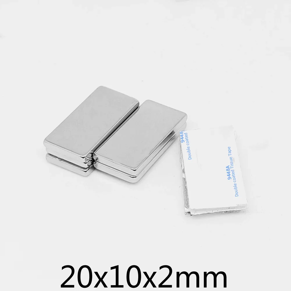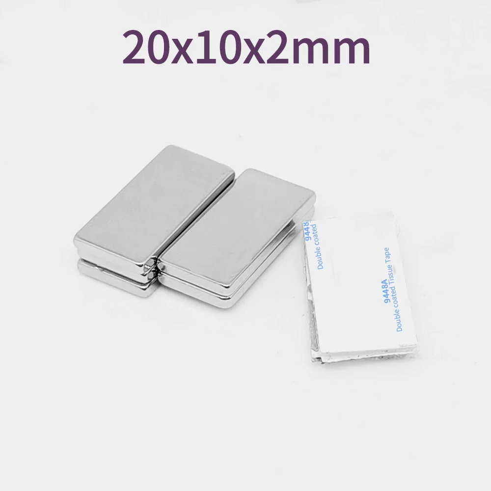 5/10/20/50/100/150PCS 20x10x2 Block Search Magnet With 3M Double-Sided Adhesive Tape 20*10*2 Strong Neodymium Magnets 20x10x2mm