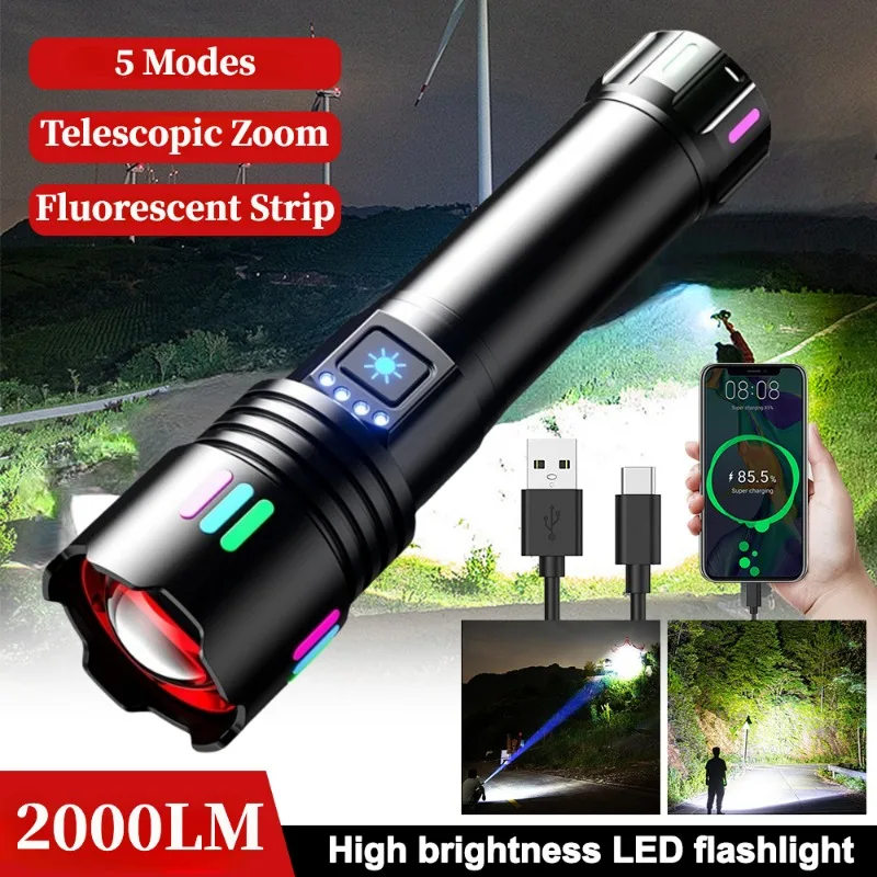 5000LM Long-Range White Laser Flashlight TYPE-C Rechargeable Camping Torch Zoomable S …