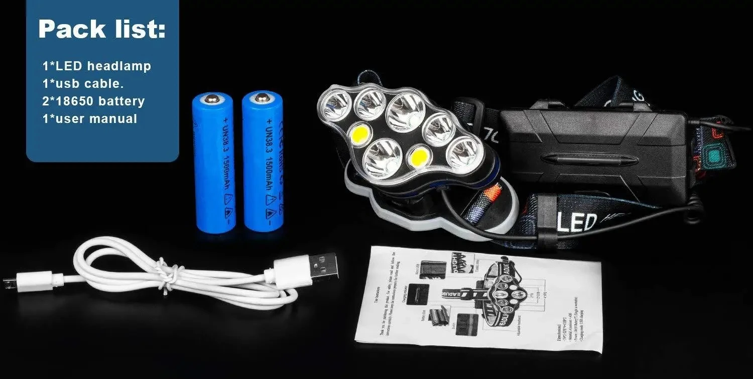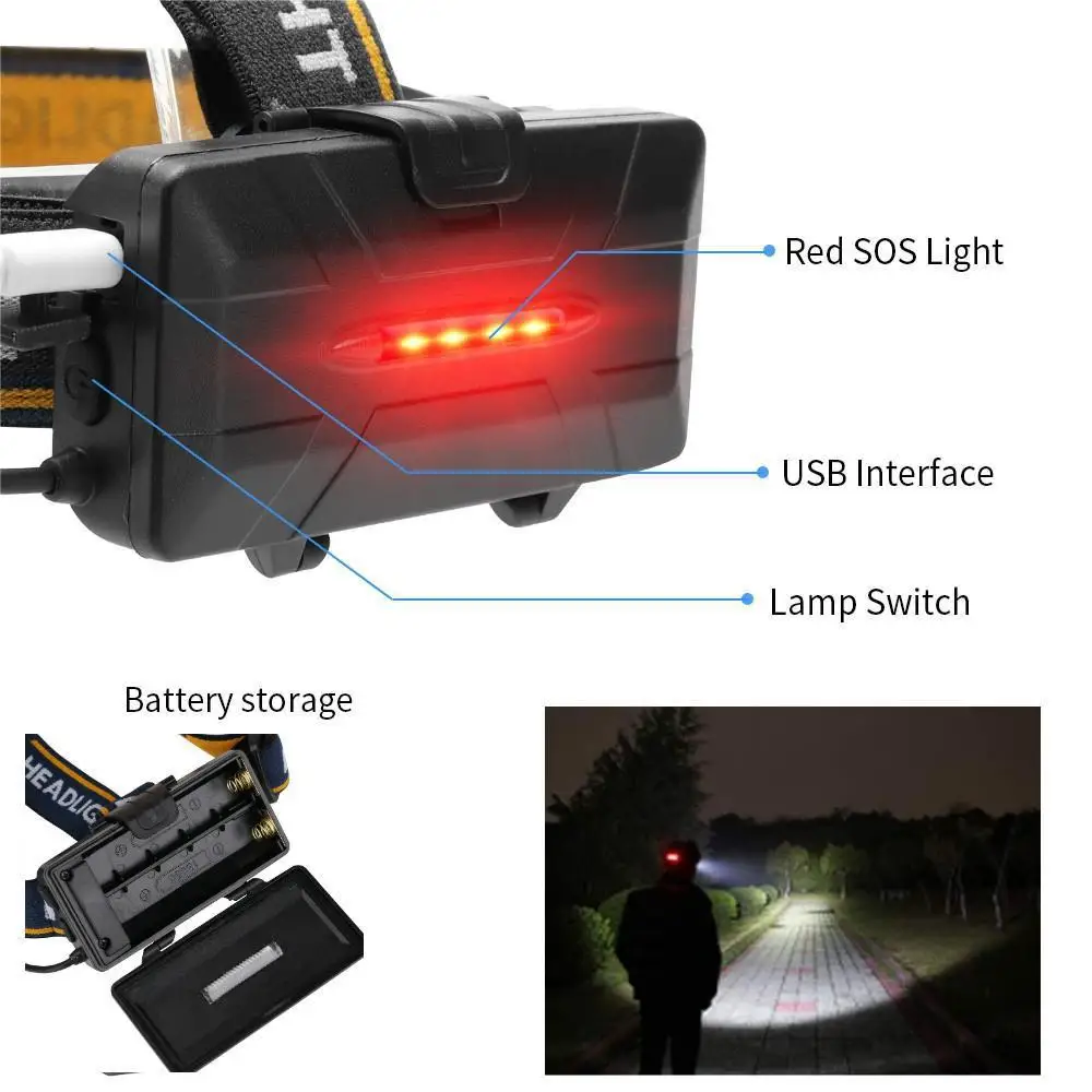 8 LED Headlamp High Power COB USB Rechargeable Head Flashlight Outdoor Camping Waterp …