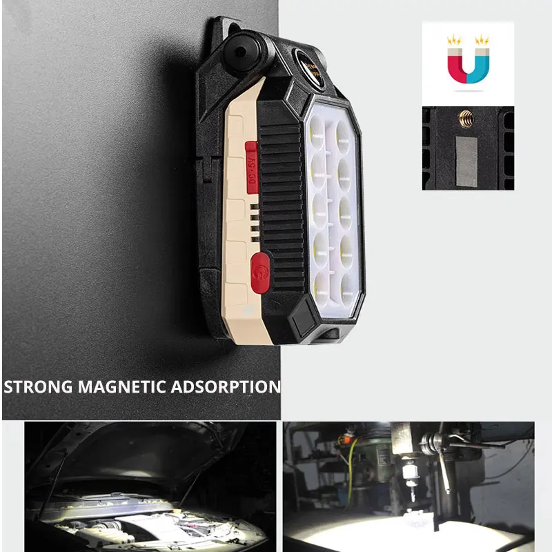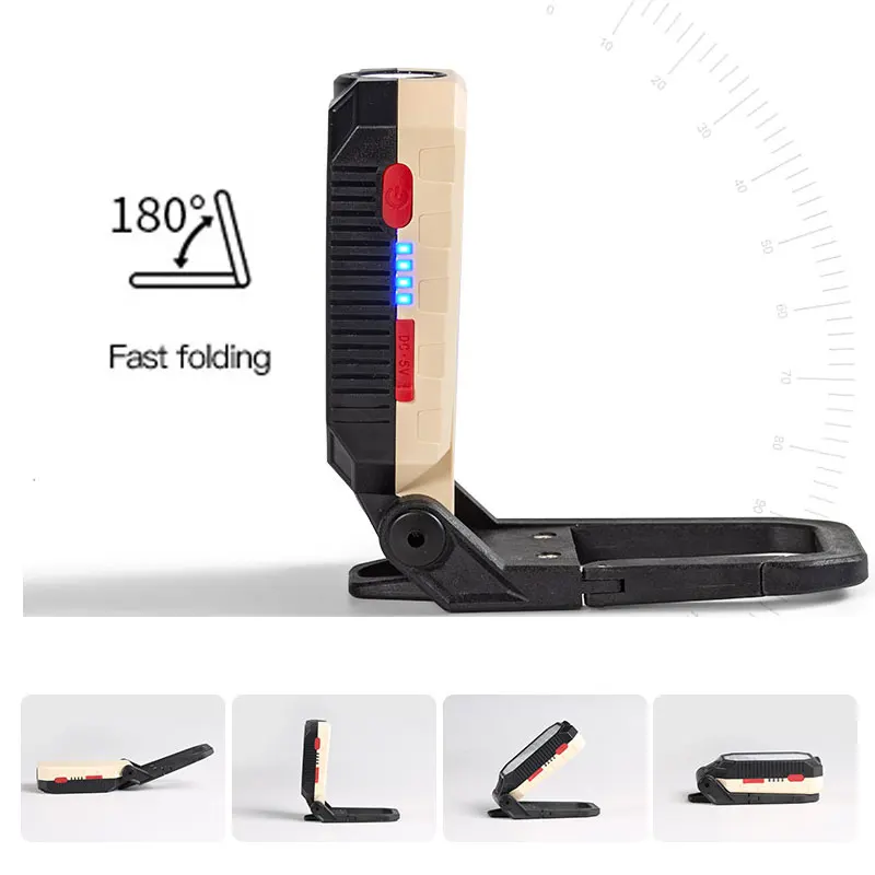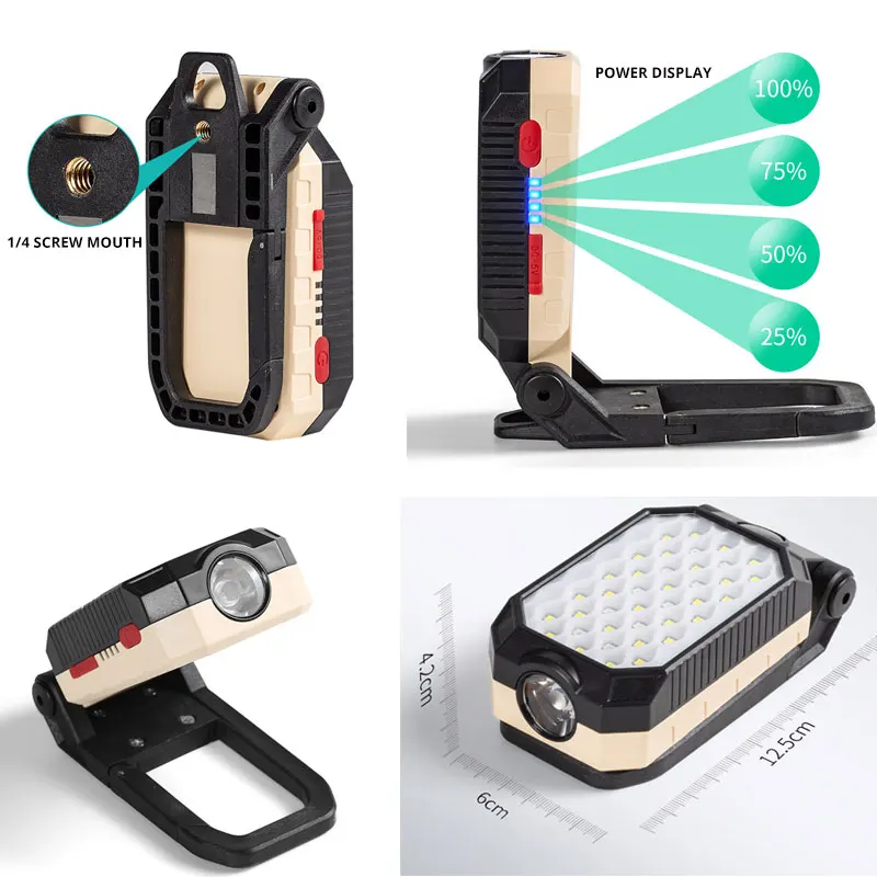 USB Rechargeable COB Work Light Portable LED Flashlight Adjustable Waterproof Camping Lantern Magnet Design with Power Display