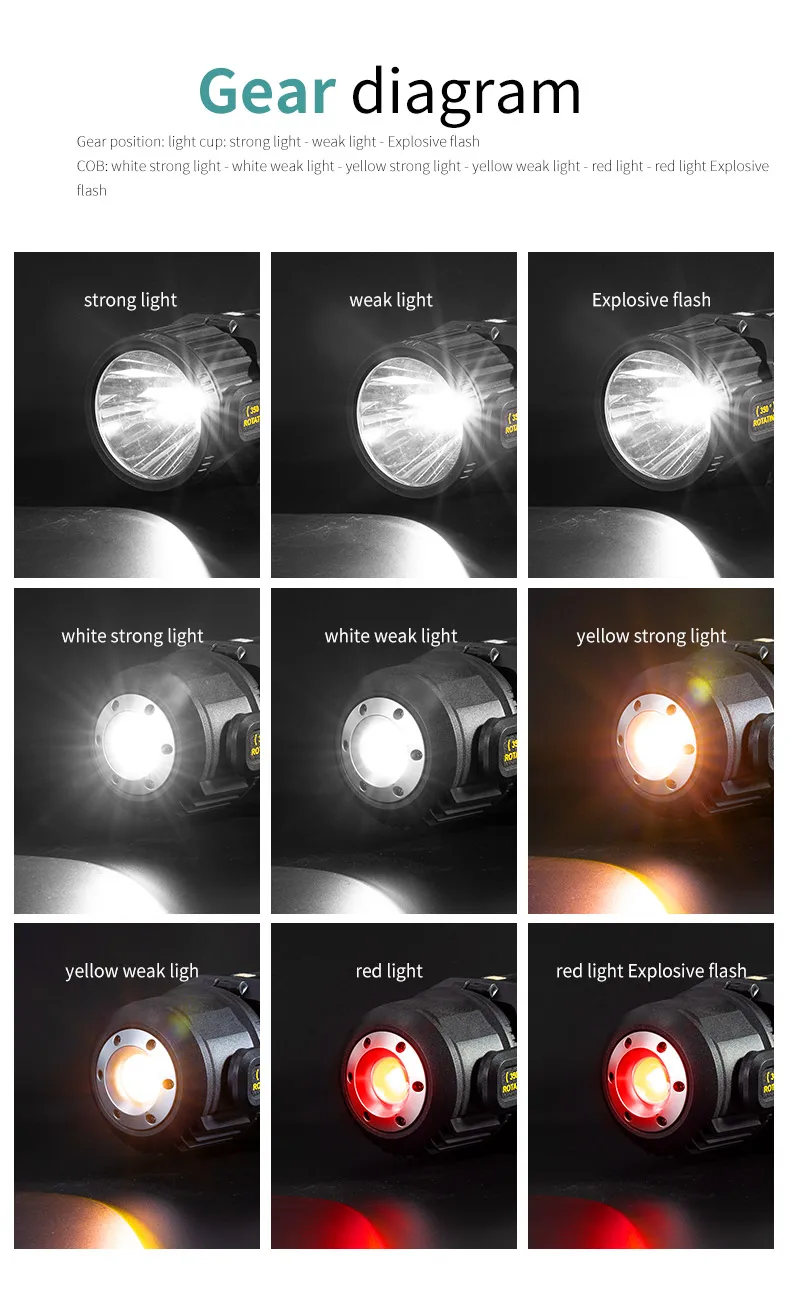 COB:white strong light – white weak light – yellow strong light – yellow weak light – red light – red light Explosiveflash