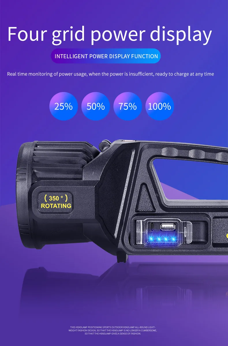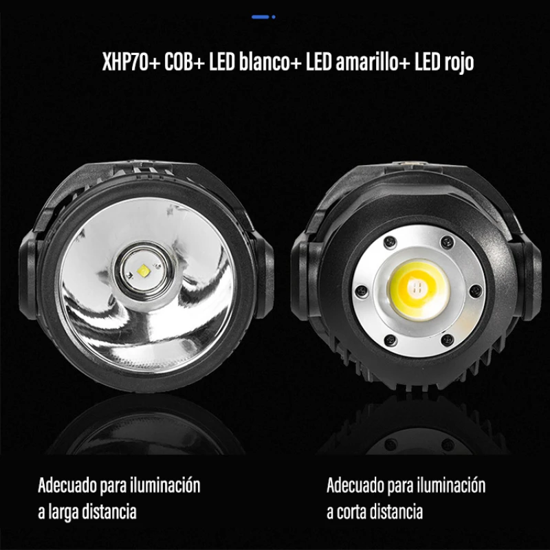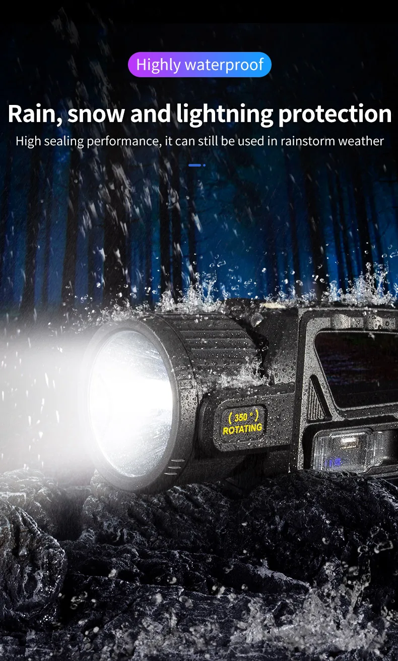 "Double-head design"-the headlight adopts high-power XHP70 lamp beads, the lighting distance can reach 500 meters, suitable for long-distance lighting, the tail light adopts warm color COB lamp beads, the lighting range can reach 35 square meters, suitable for close lighting.