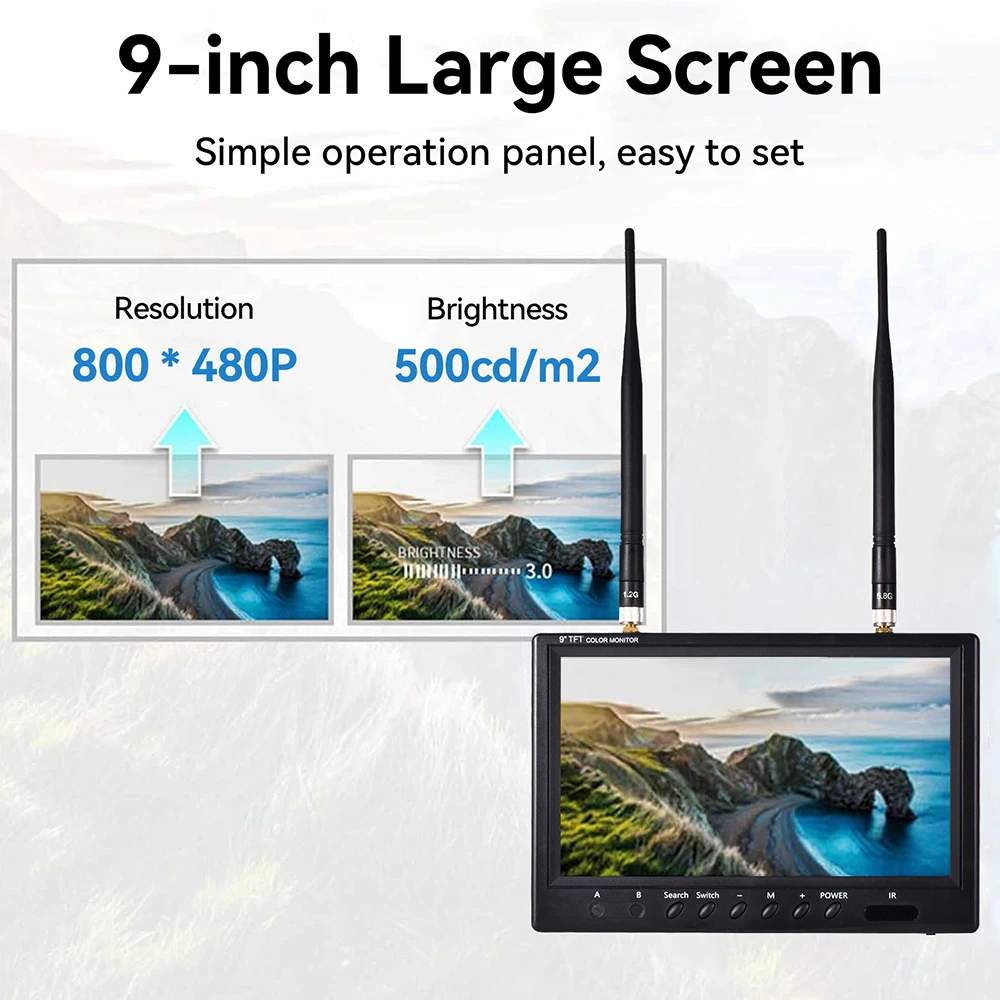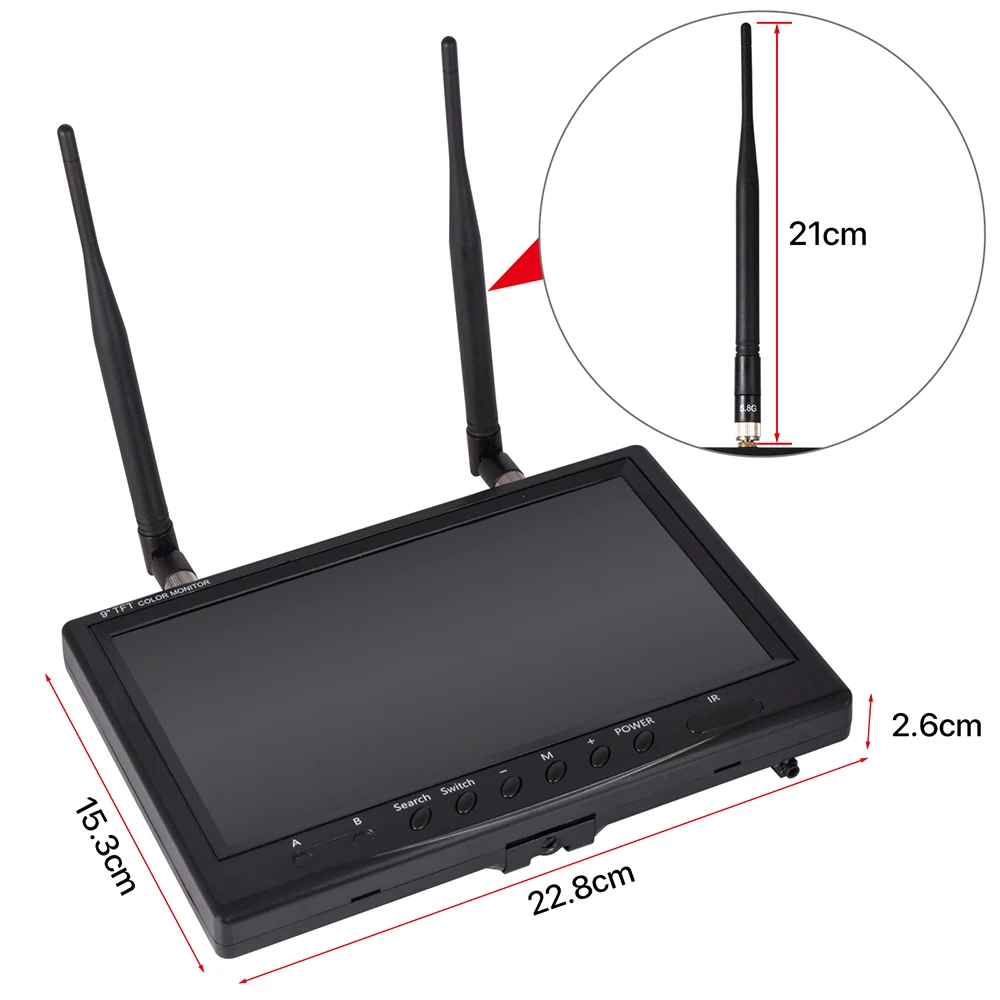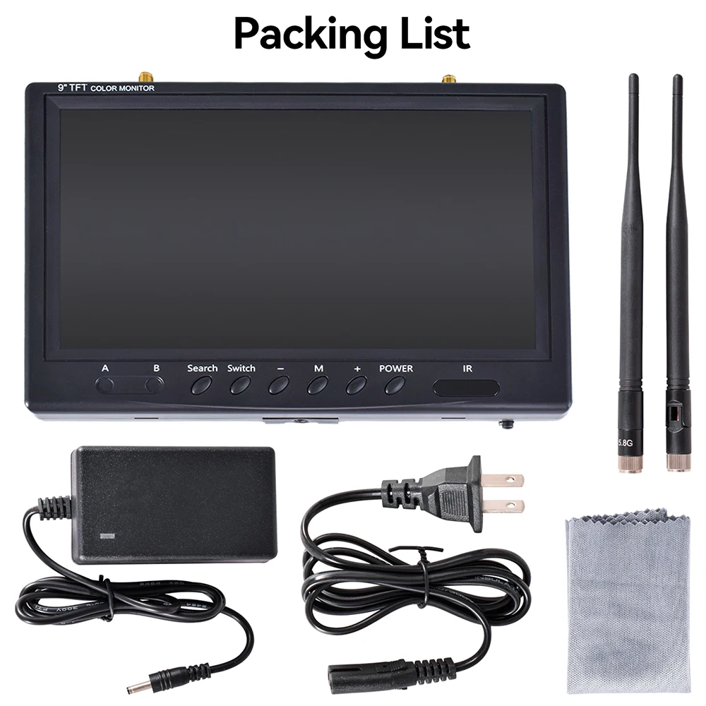 1. FPV Performance: This FPV monitor is a large sized 9.0" screen with a super bright LCD. FPV diversity monitor 5.8Ghz screen.