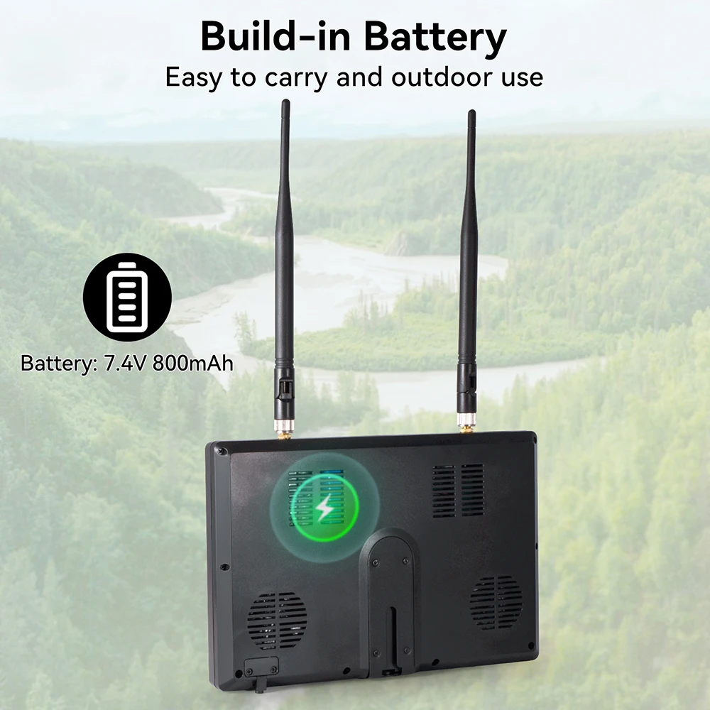 5. Built-in 800mAH/7.4V rechargeable Li-Po battery, Not worry about lots of wires or batteries to power each individual part. The integrated battery keeps your FPV ground station compact and easy to use.