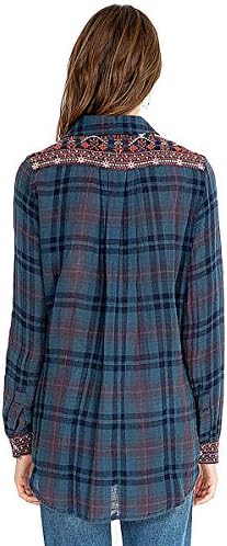 AK Women’s V Neck Boho Embroidered Mexican Tops Long Sleeve Shirts Casual Loose …
