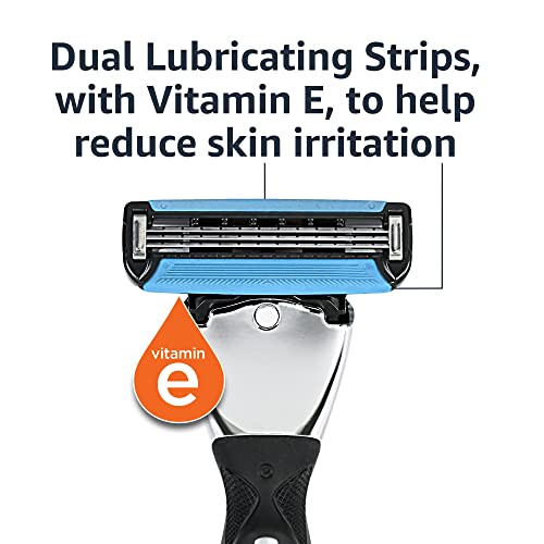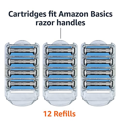 Amazon Basics 3-Blade Razor Refills for Men with Dual Lubrication, 12 Cartridges (Fit …