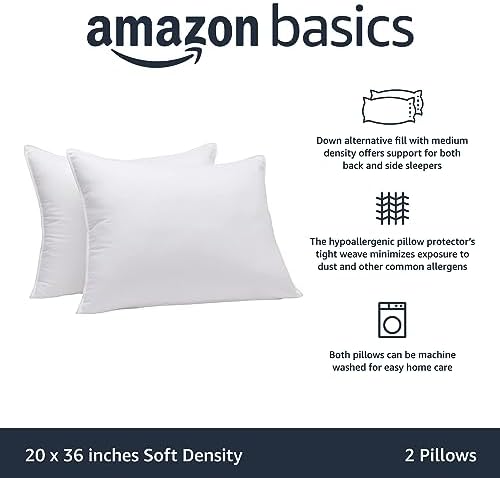 Amazon Basics Down-Alternative Pillows, Soft Density for Stomach and Back Sleepers …