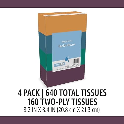 Amazon Basics Facial Tissue, 2-Ply, 640 Count (4 Packs of 160) (Previously Solimo)