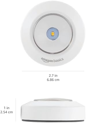 Put light where you need it the most with the Amazon Basics LED Puck Light. Whether you’re working on a project in the garage, moving things around in the attic or simply need some pantry lighting, this light is designed with you in mind. To operate, just press on the LED lens to turn the puck on and off. Featuring a sleek and compact design. If you’re renting, or only want the light installed temporarily, you can use the included double-sided tape! The puck is powered by 3 AAA batteries; ensuring many hours of operation and keeps things wire free and hassle free. Perfect for garages, attics, workshops, sheds, closets, pantries, RVs, campers and much more, the Amazon Basics LED Puck Light gives you the light you need, where you need it.