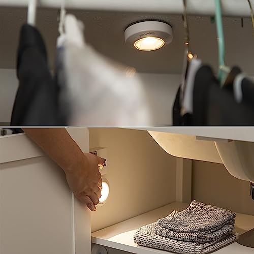 Amazon Basics LED Puck Lights, Battery Operated, 50 Lumens 2 Pack, Tap Light, Stick o …