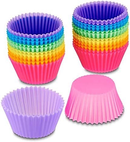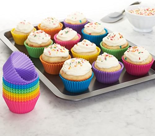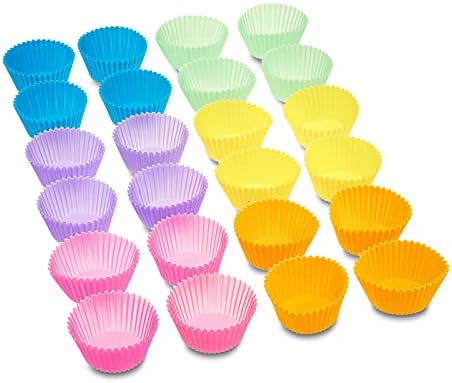 Amazon Basics Reusable Silicone Baking Cups, Muffin Liners – Pack of 24, Multic …