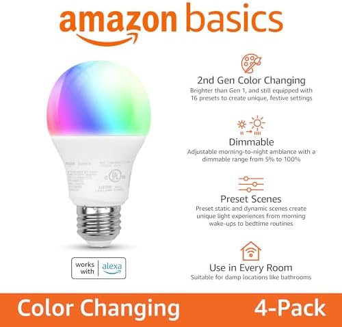 Amazon Basics – Smart A19 LED Light Bulb, 2.4 GHz Wi-Fi, 9W (Equivalent to 60W) …