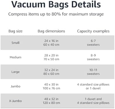 Note: Suggest to use vacuum cleaner to vacuum a Large, Jumbo or X-jumbo bag for fast result
