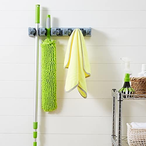 Amazon Basics – Wall Mount Broom Holder and Garden Tool Organizer, 6 Hook and 5 …