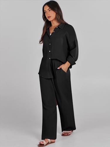ANRABESS Women 2 Piece Outfits 2023 Long Sleeve Wide Leg Matching Lounge Sets Fashion …