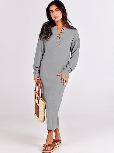 ANRABESS Women Sweater Dress Long Sleeve Button V Neck Oversized Casual Loose Fall Wa …