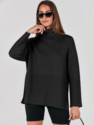 ANRABESS Women’s Fashion 2023 Oversized Turtleneck Striped Trendy Sweaters Ribb …