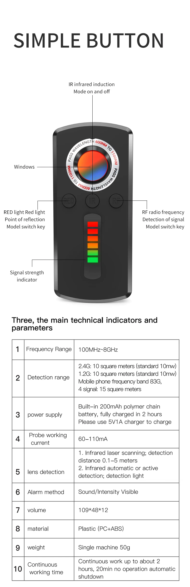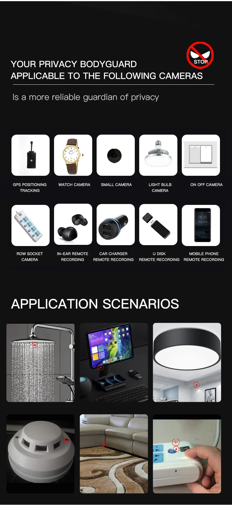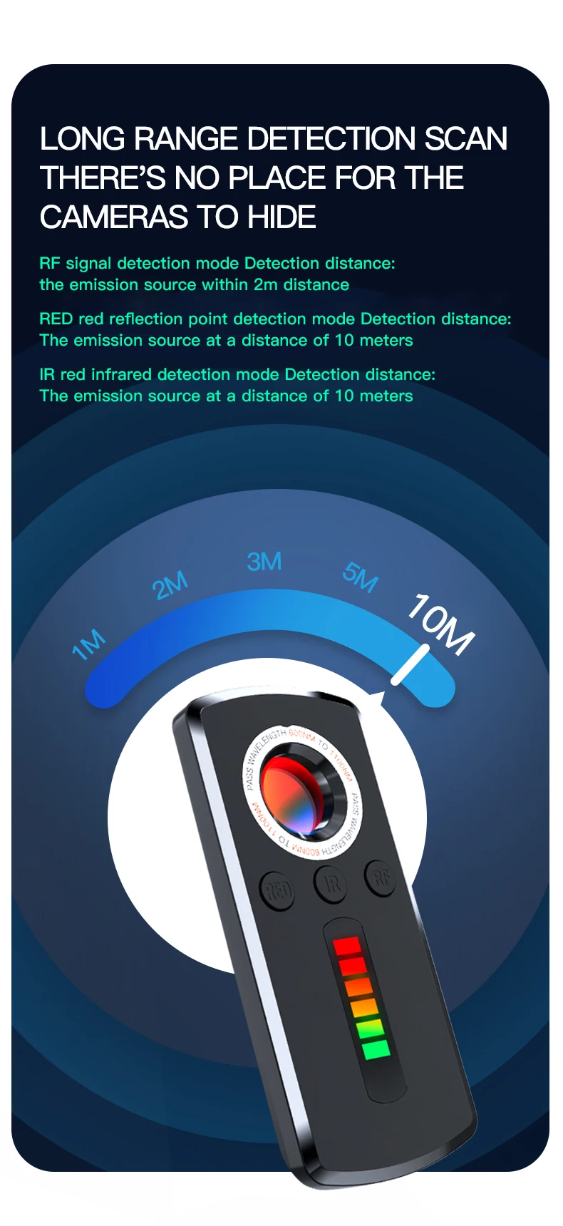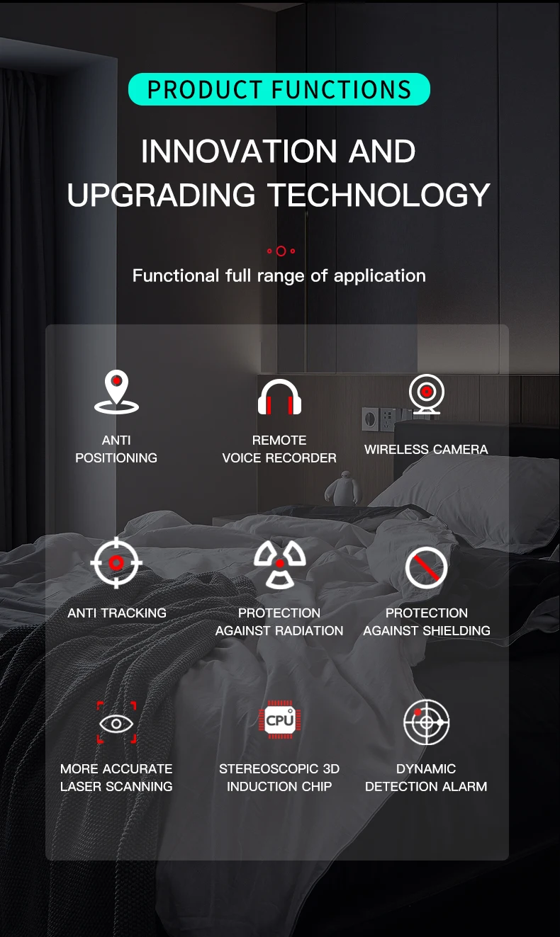 Generally seen on the market wireless surreptitious camera, remote recording bug, GPS locator, tracker, are used to insert cell phone traffic card or wifi connection, only the traffic card and wifi connection they can transmit the data recorded secretly. Therefore, our signal detector, it can be very accurate to capture the signal when it uploads and downloads data, once the device has data flow, you can immediately sense it.