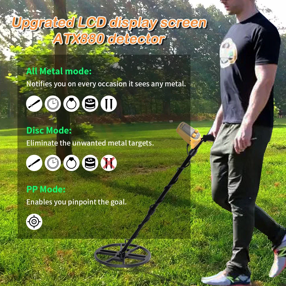 ATX880 Underground Metal Detector Professional High Sensitivity Adjustable Gold Detector Treasure Hunter Waterproof Search Coil