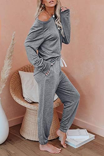 Features: Long sleeves, Button up off shoulder pullover top, joggers pants with adjustable drawstring, solid color, relaxed fit style, womens 2 piece loungewear set