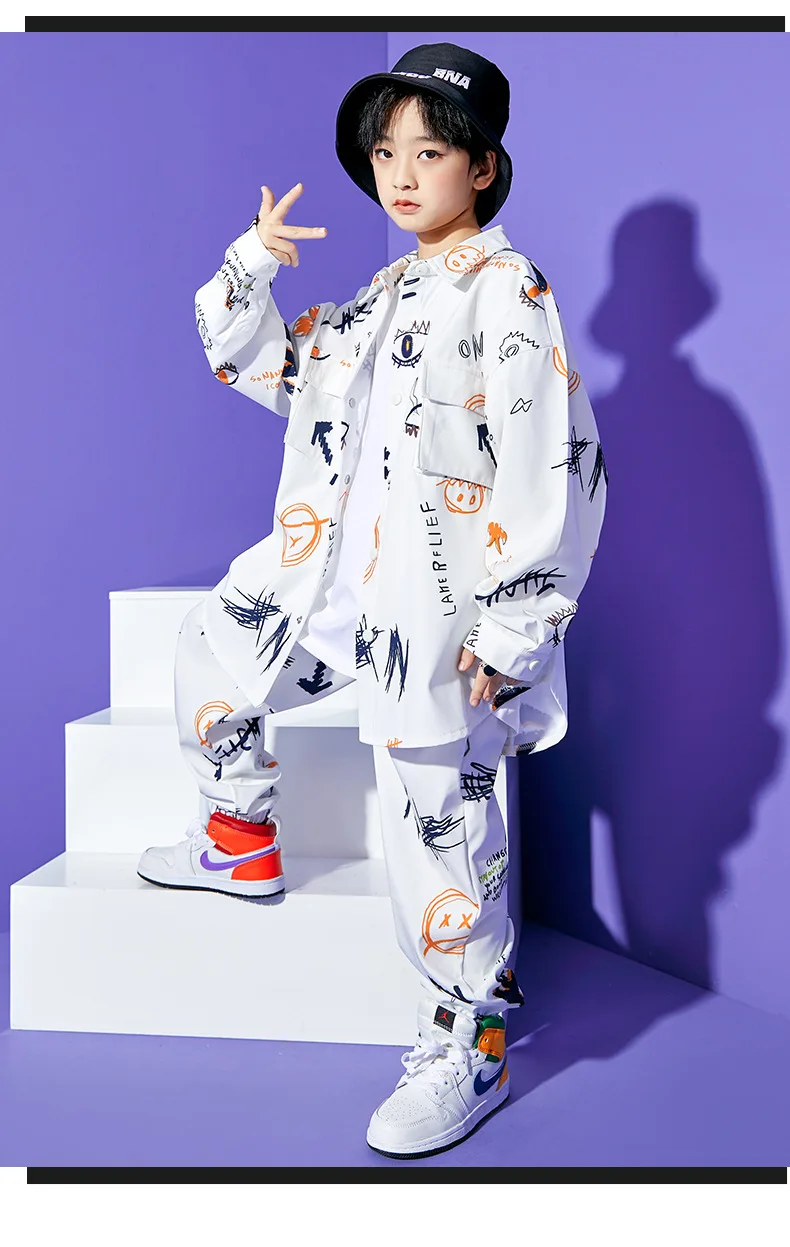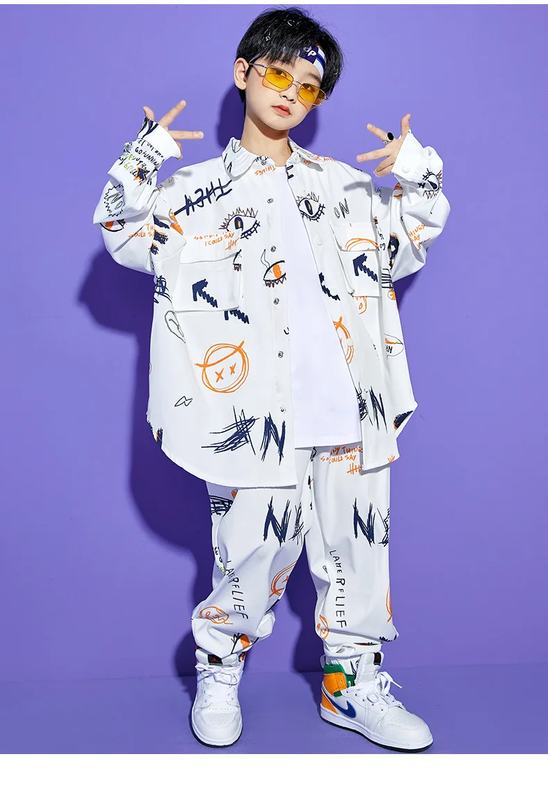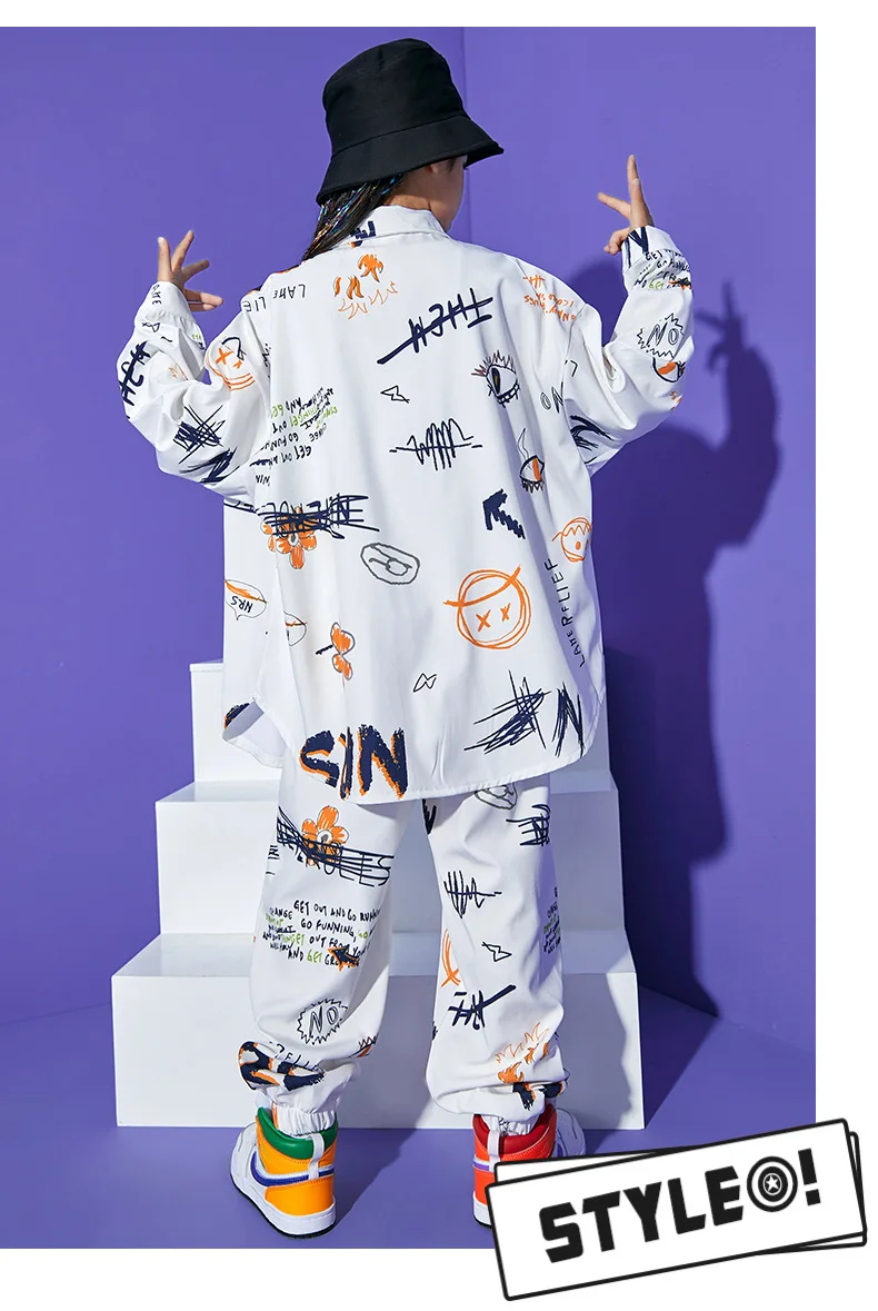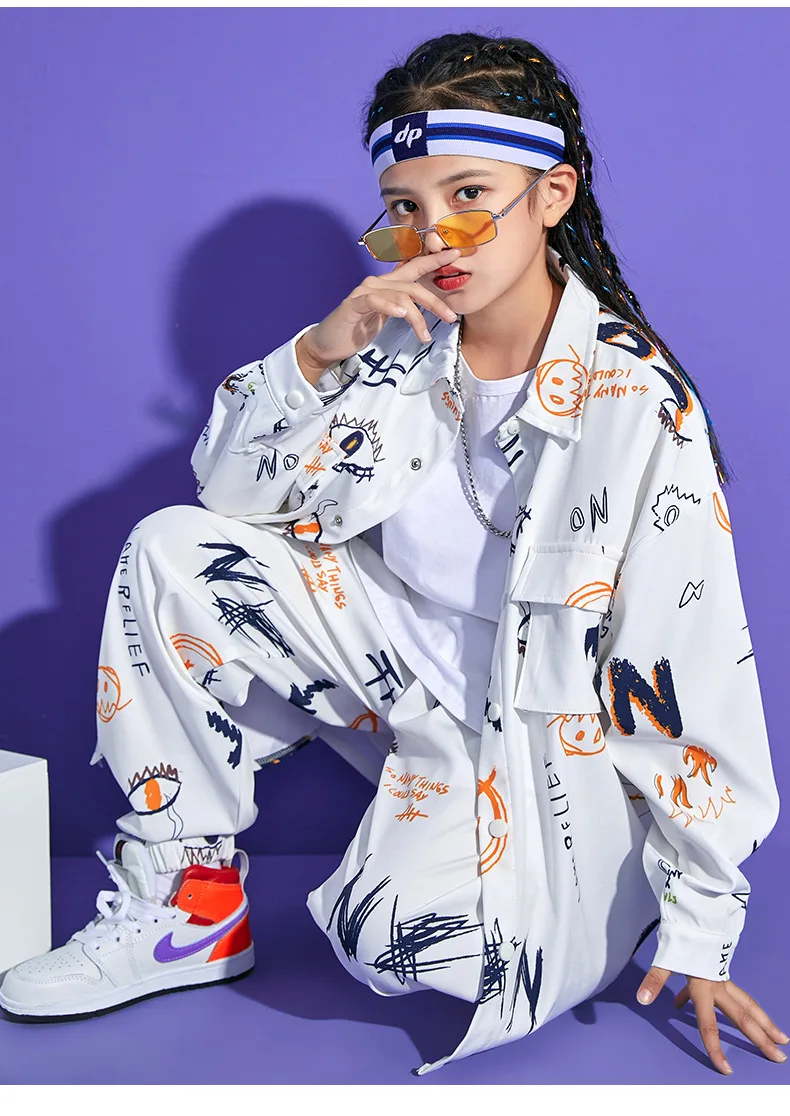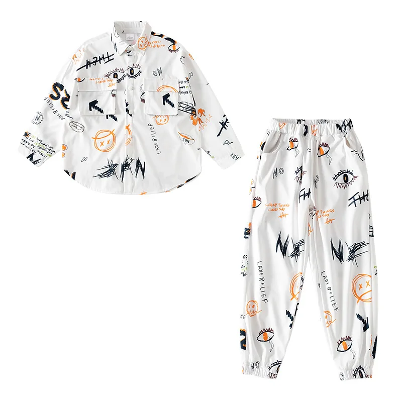 Autumn Hip Hop Clothing Set for Big Girls White Turn-down Collar Shirts +jogger Pants …