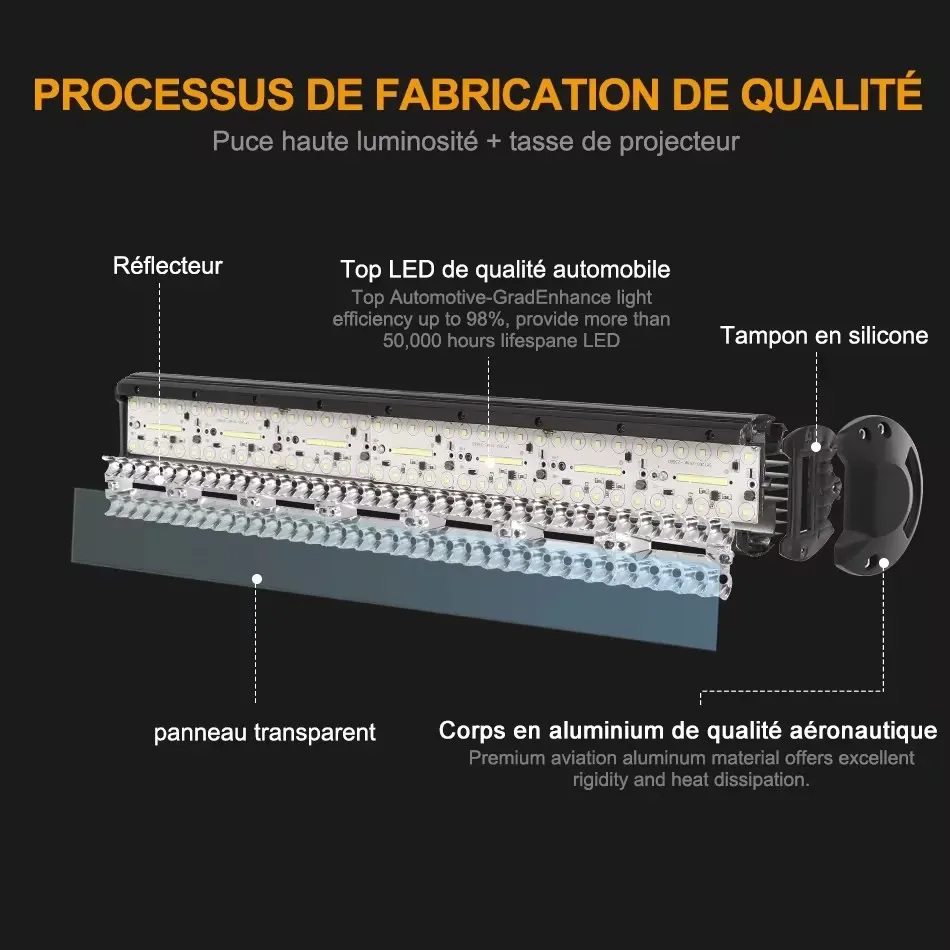 1: Super brightness: three rows of combined beams and nested reflective cups are used in the middle to achieve extremely high light efficiency