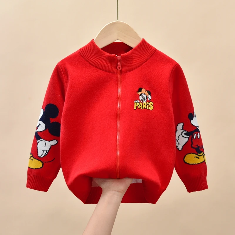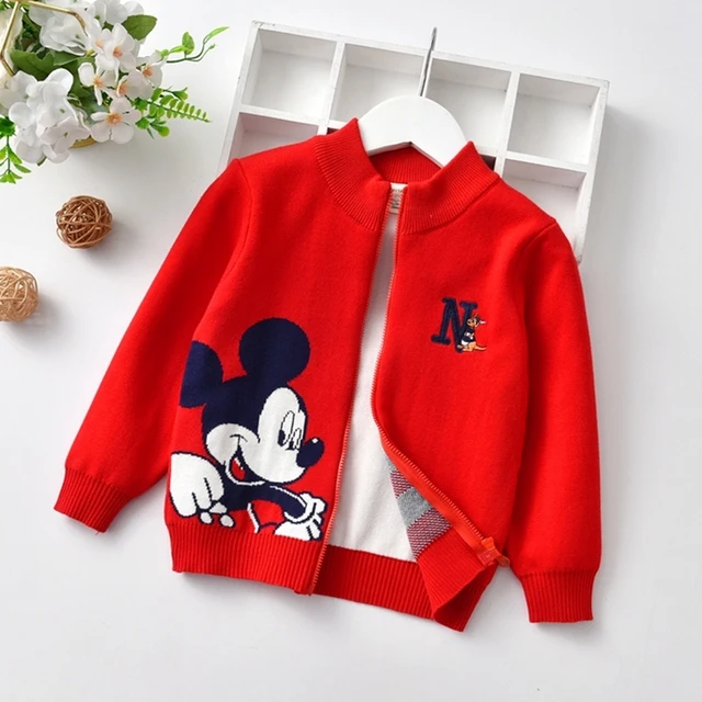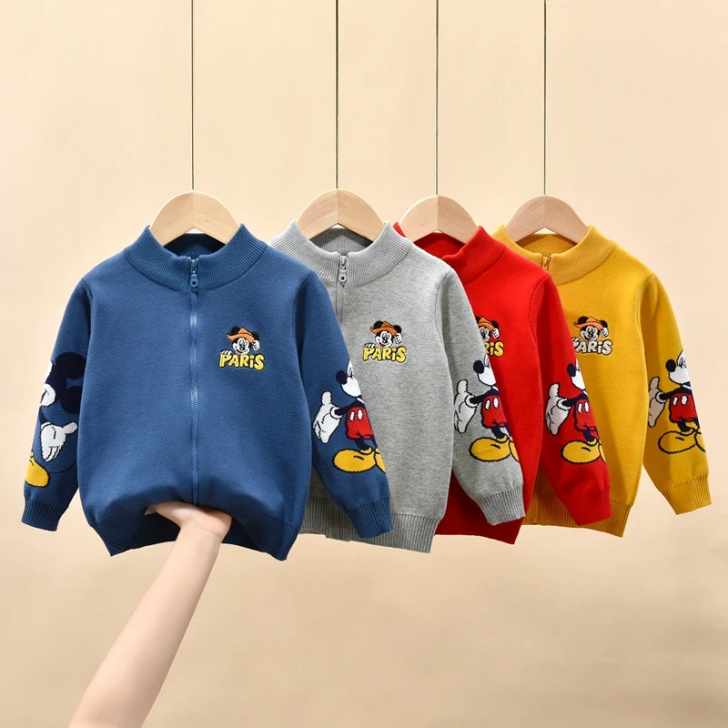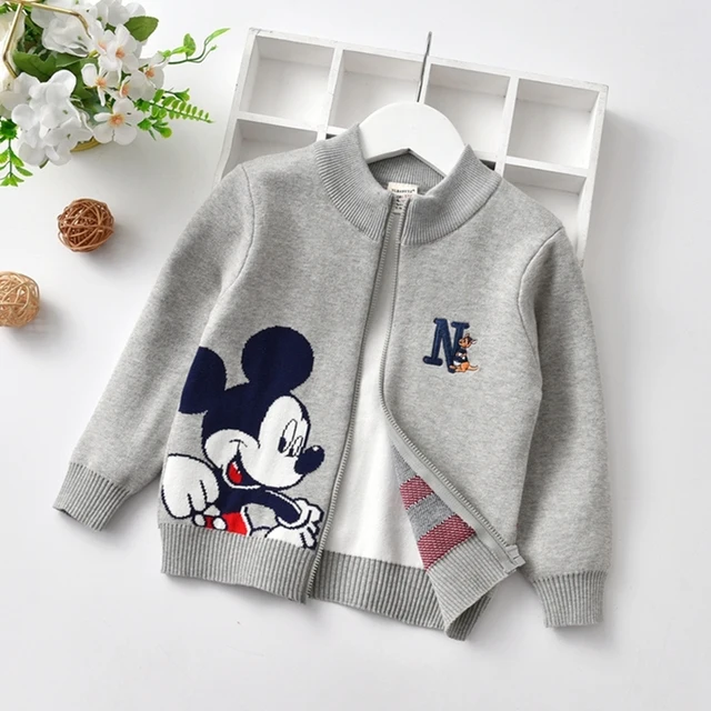Baby Boy Sweater Spring Autumn Thick Knitted Cotton Tops Cartoon Mickey Mouse Childre …